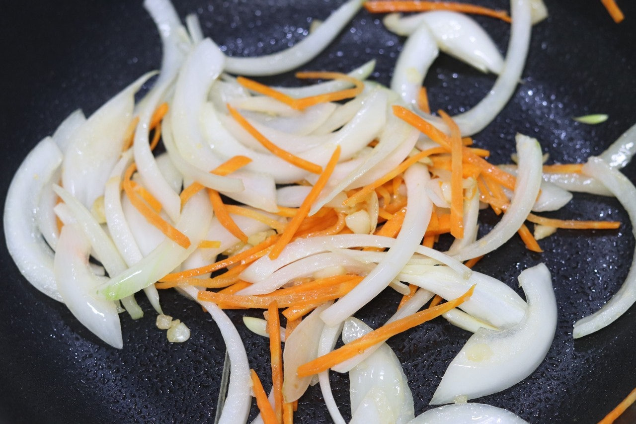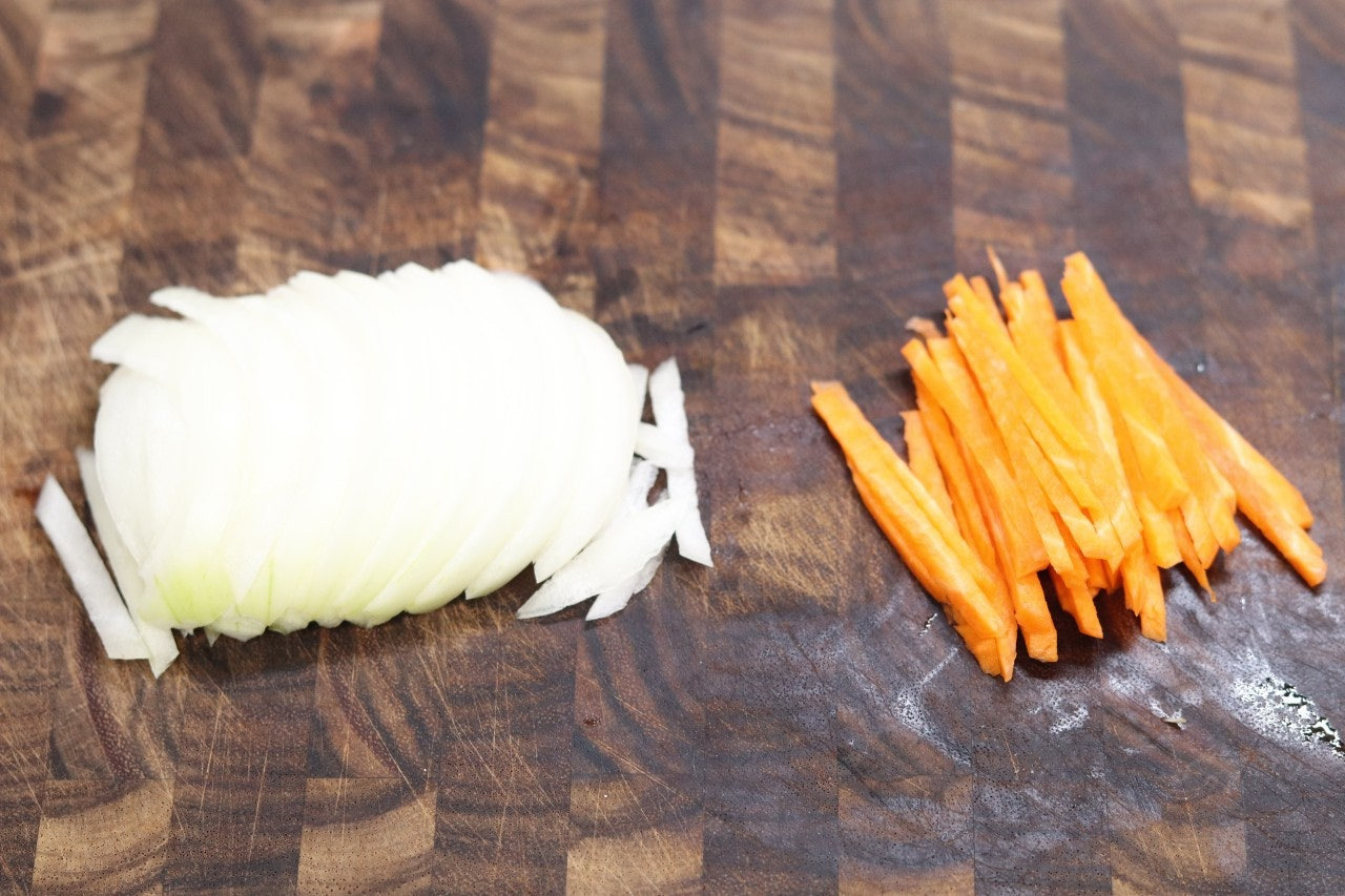 1. 양파와 당근은 채 썰어 줍니다.