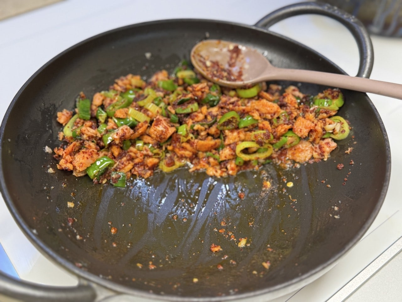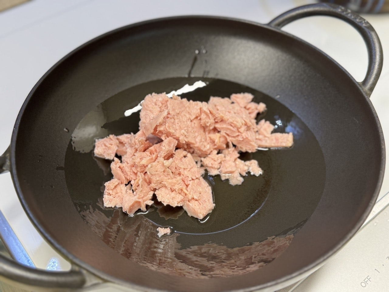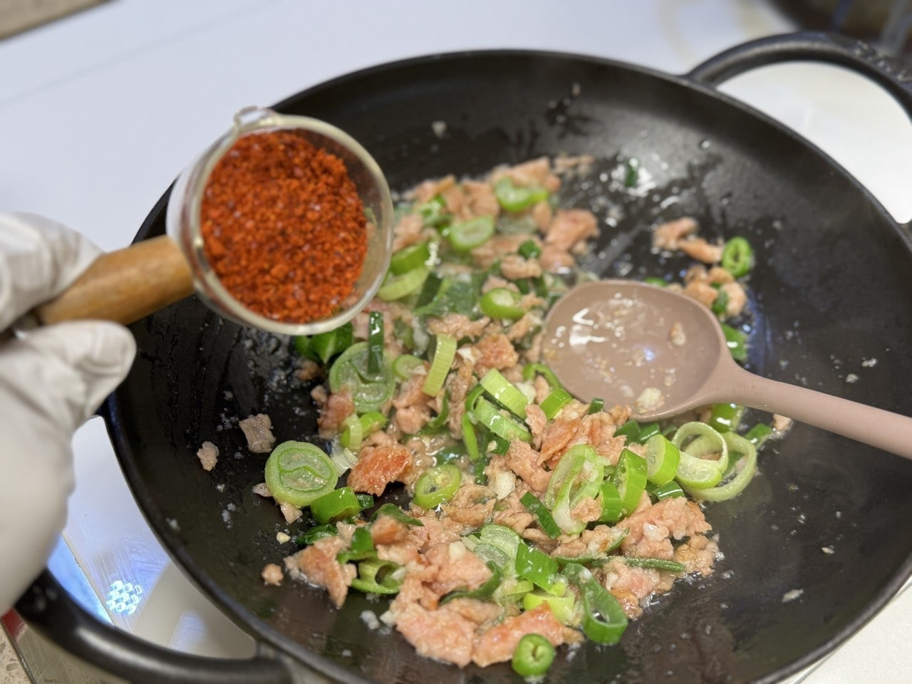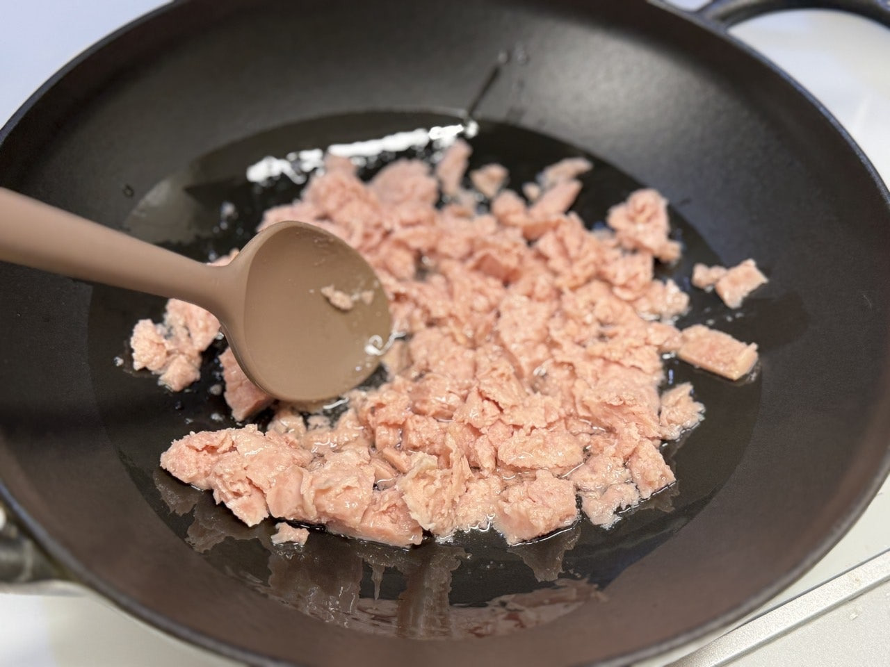 으깬 스팸으로 기름을 내어주고
