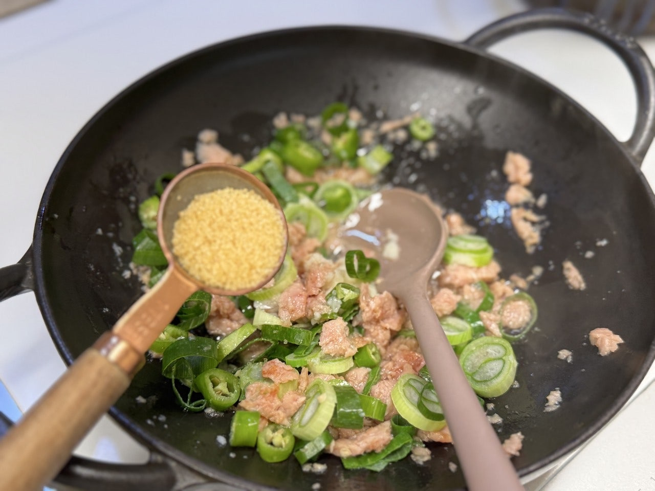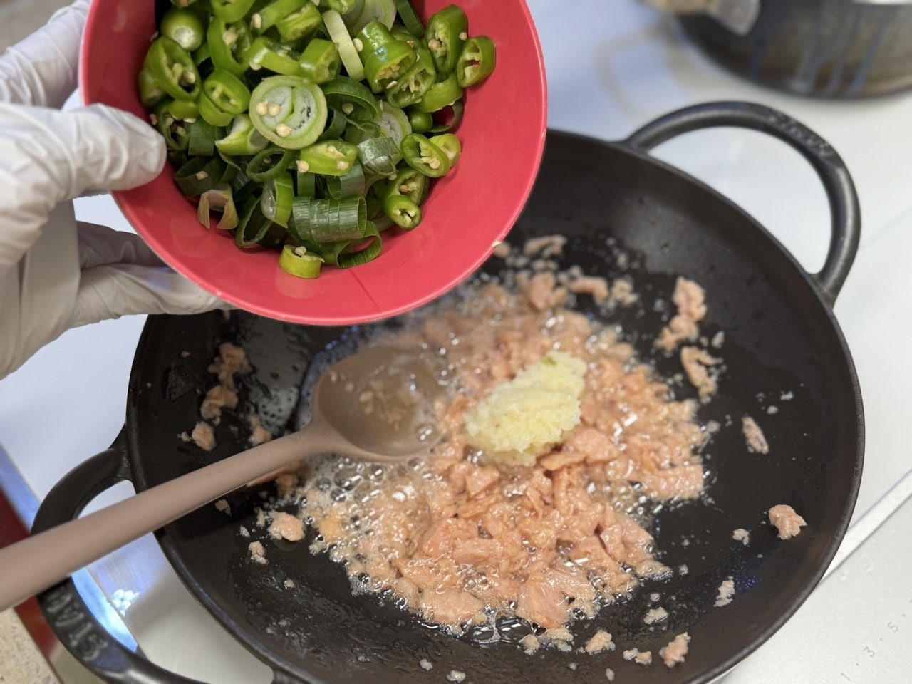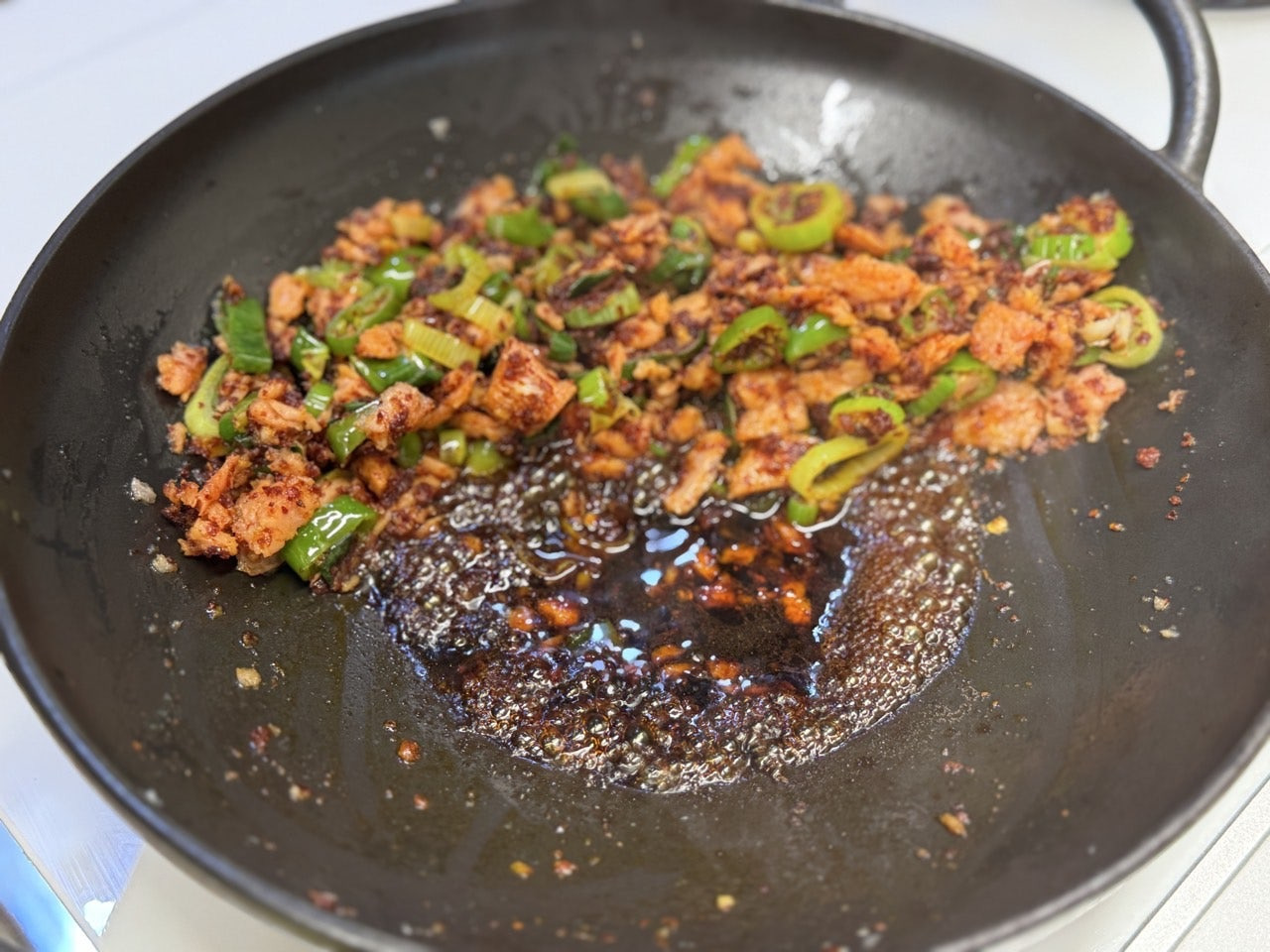 으깬 스팸으로 기름을 내어주고