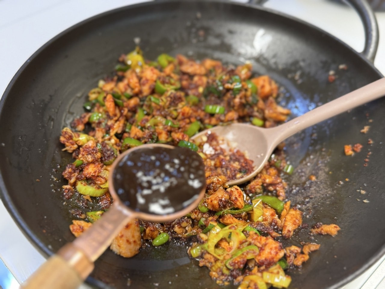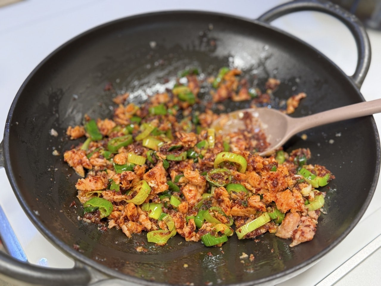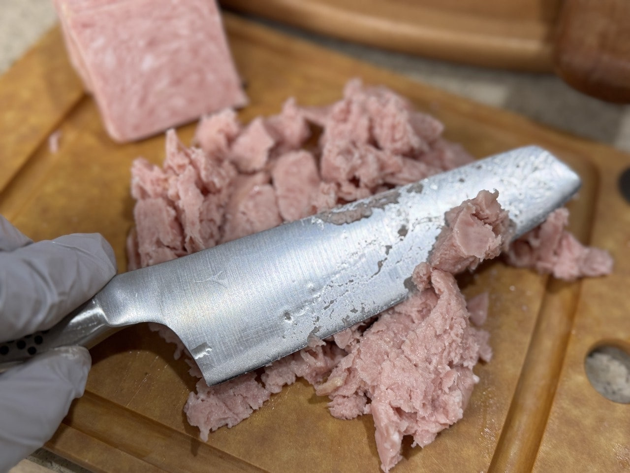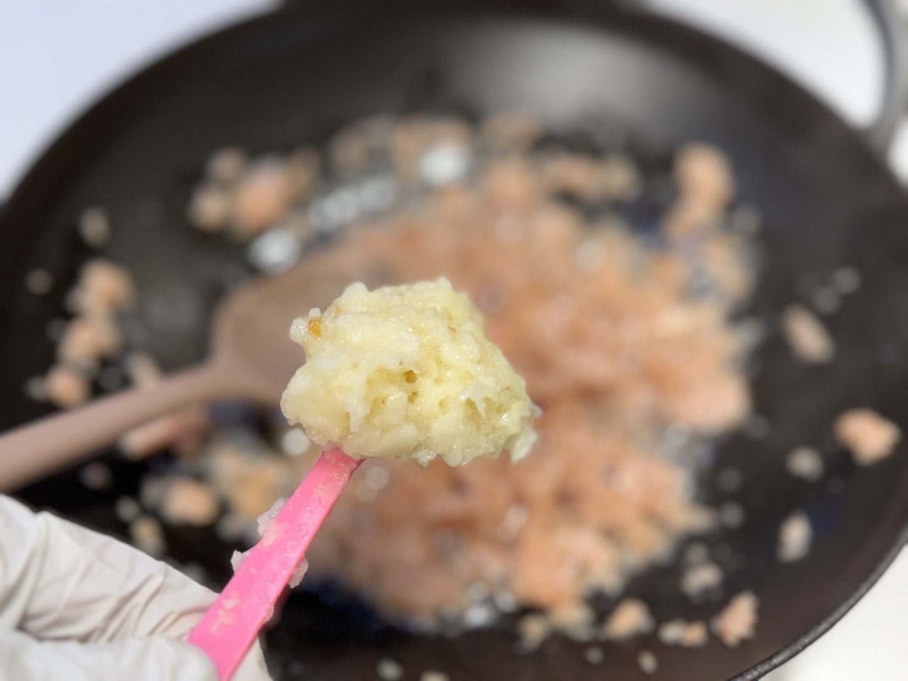 으깬 스팸으로 기름을 내어주고