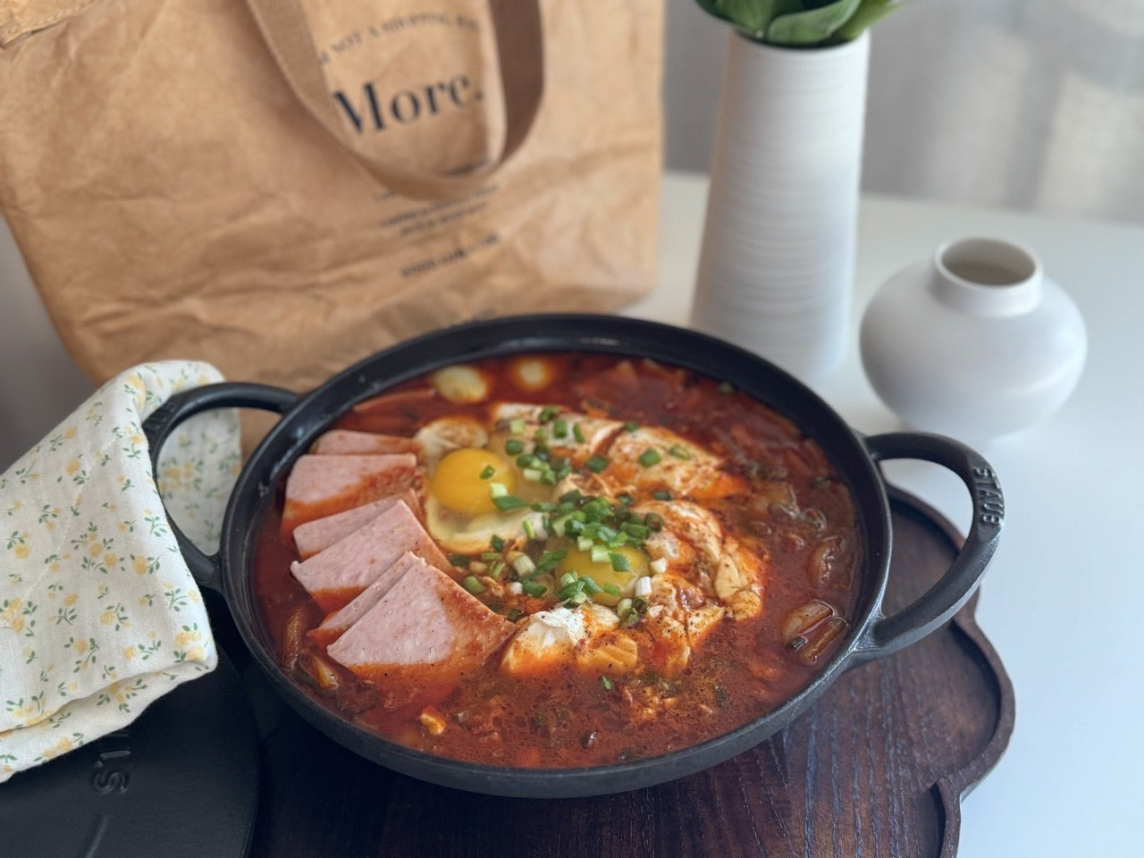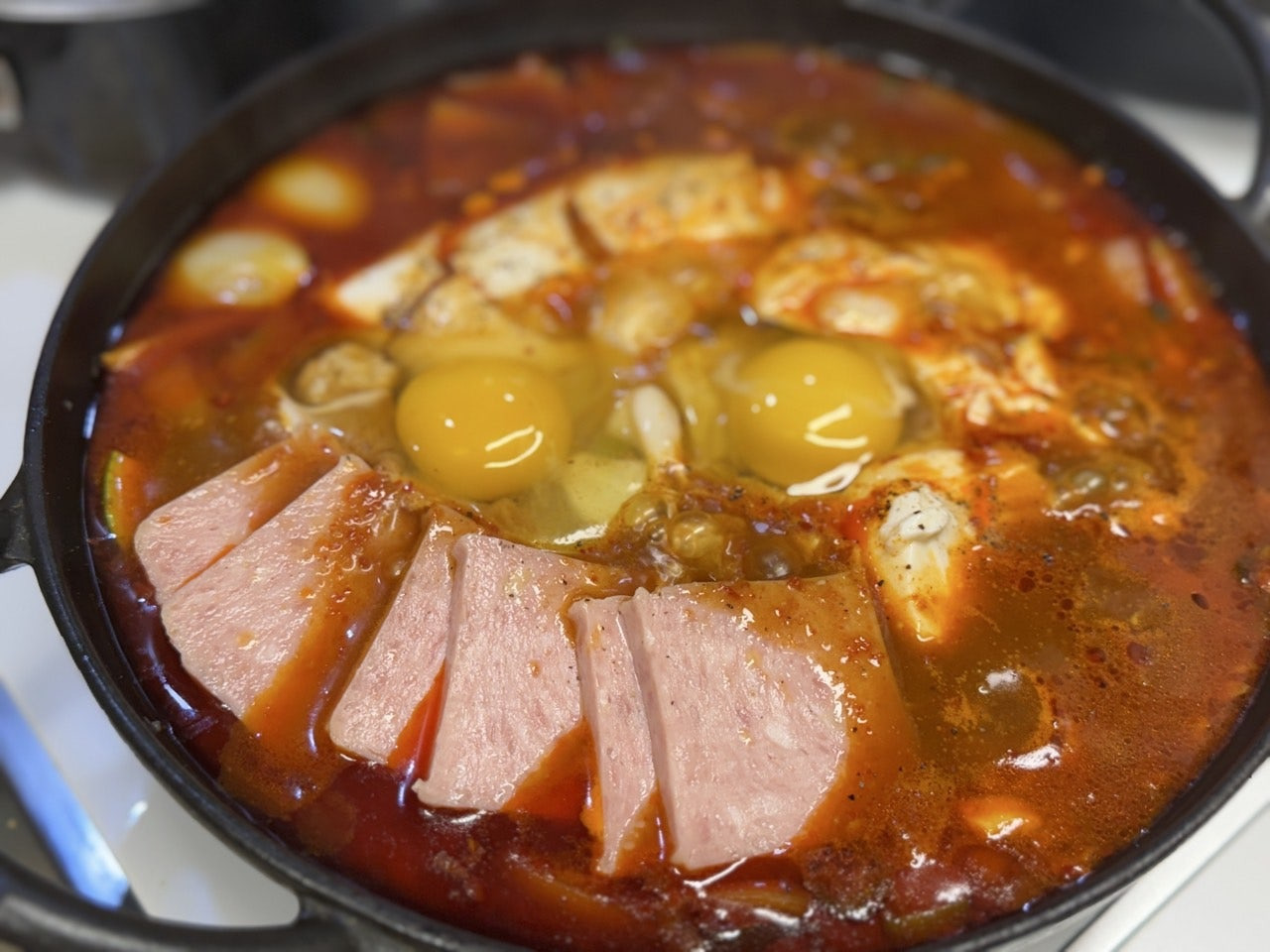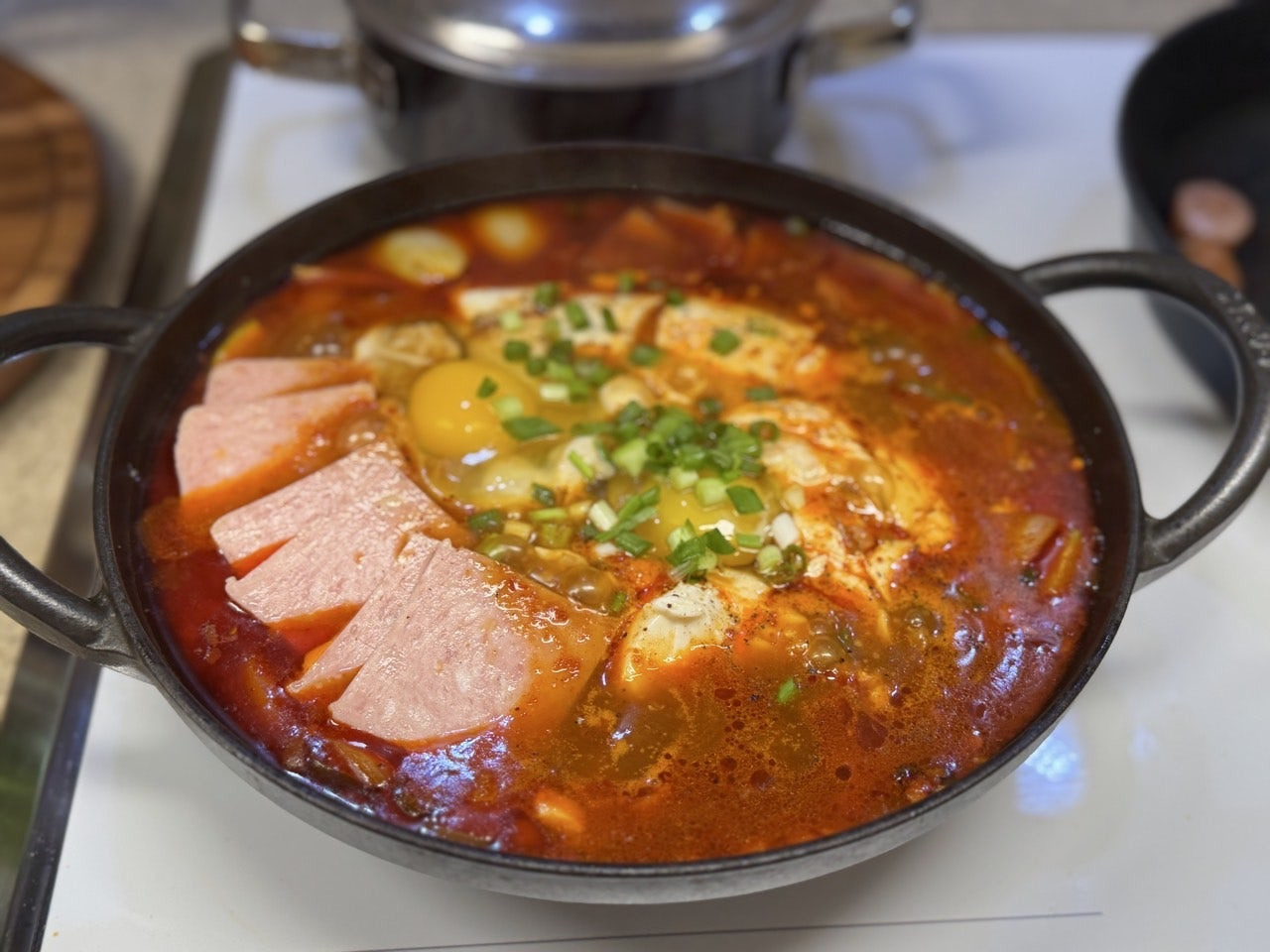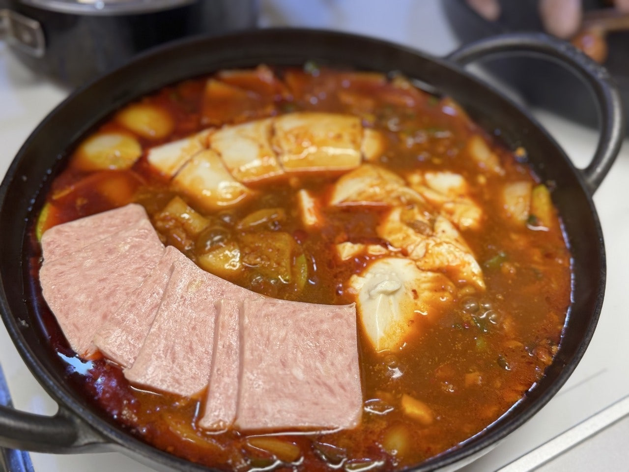 맛있게 끓여진 스팸 순두부찌개는