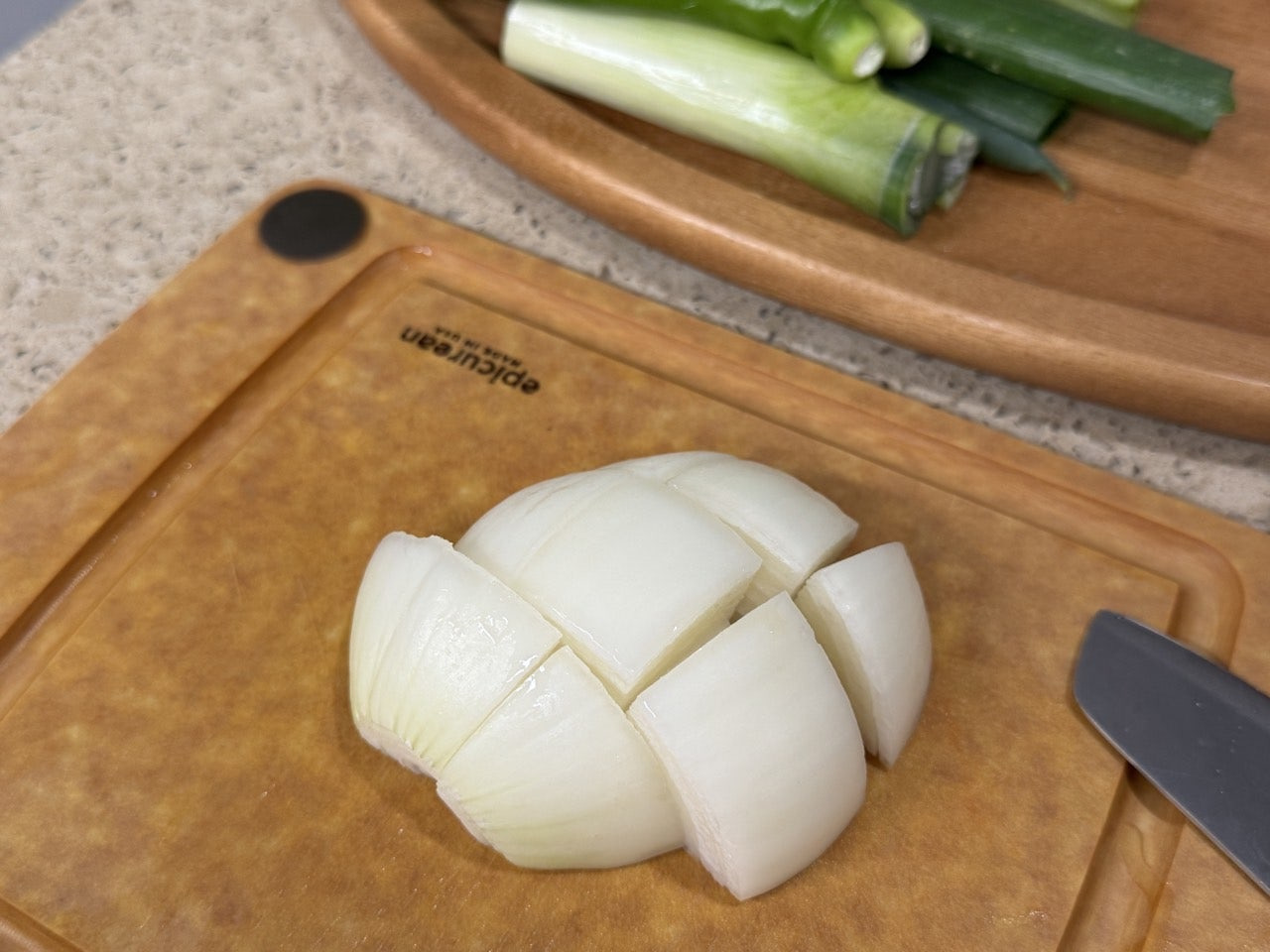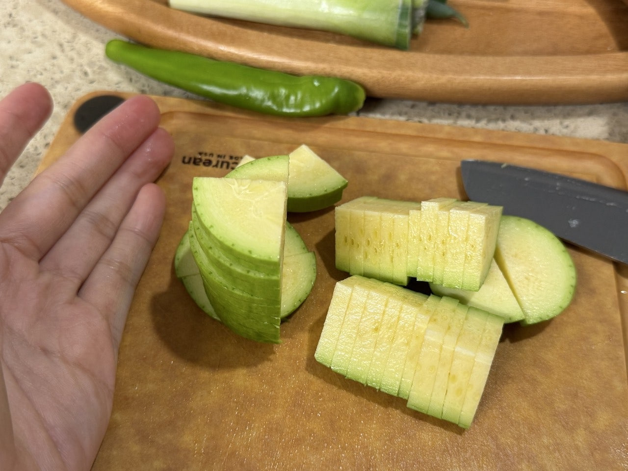 애호박과 양파는 나박 썰기로 준비해요.
