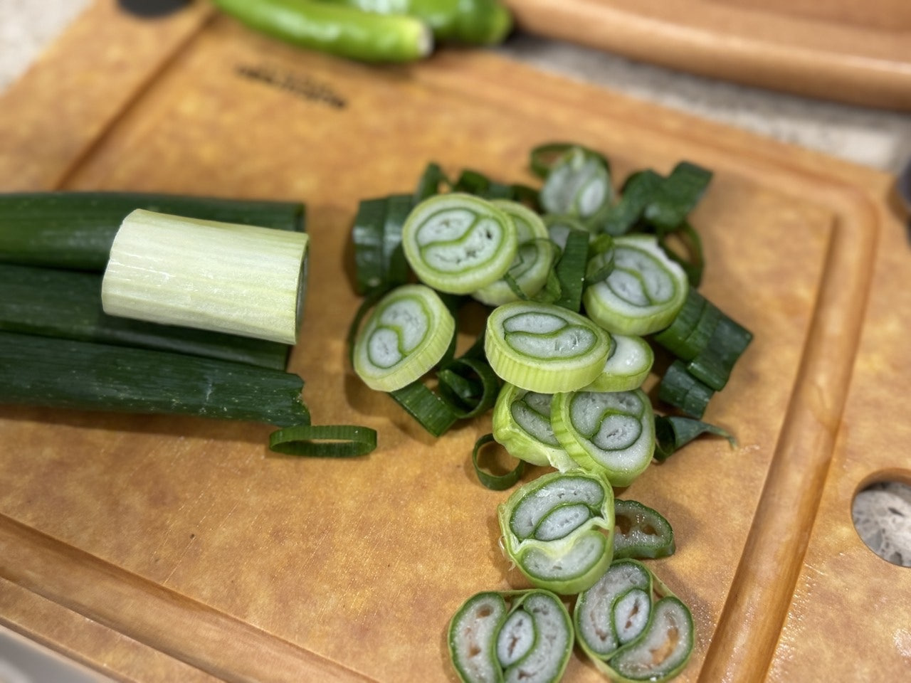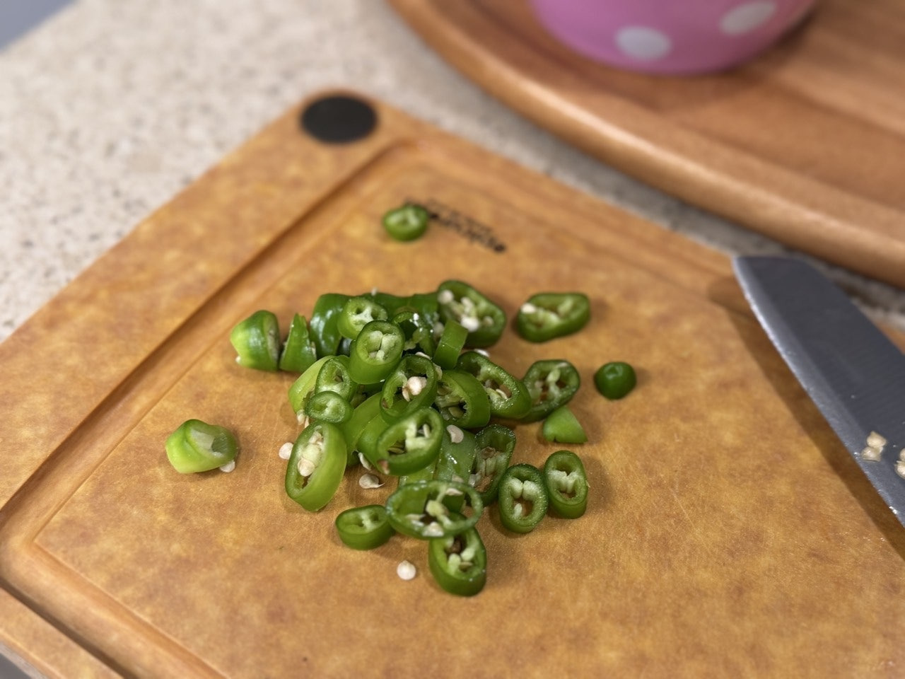매콤함을 위해 청양고추 2개 쫑쫑 썰어 준비해요.