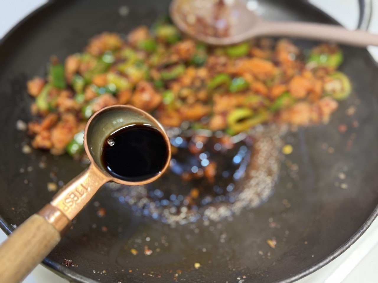 남은 공간에 간장 3T를 넣어요.