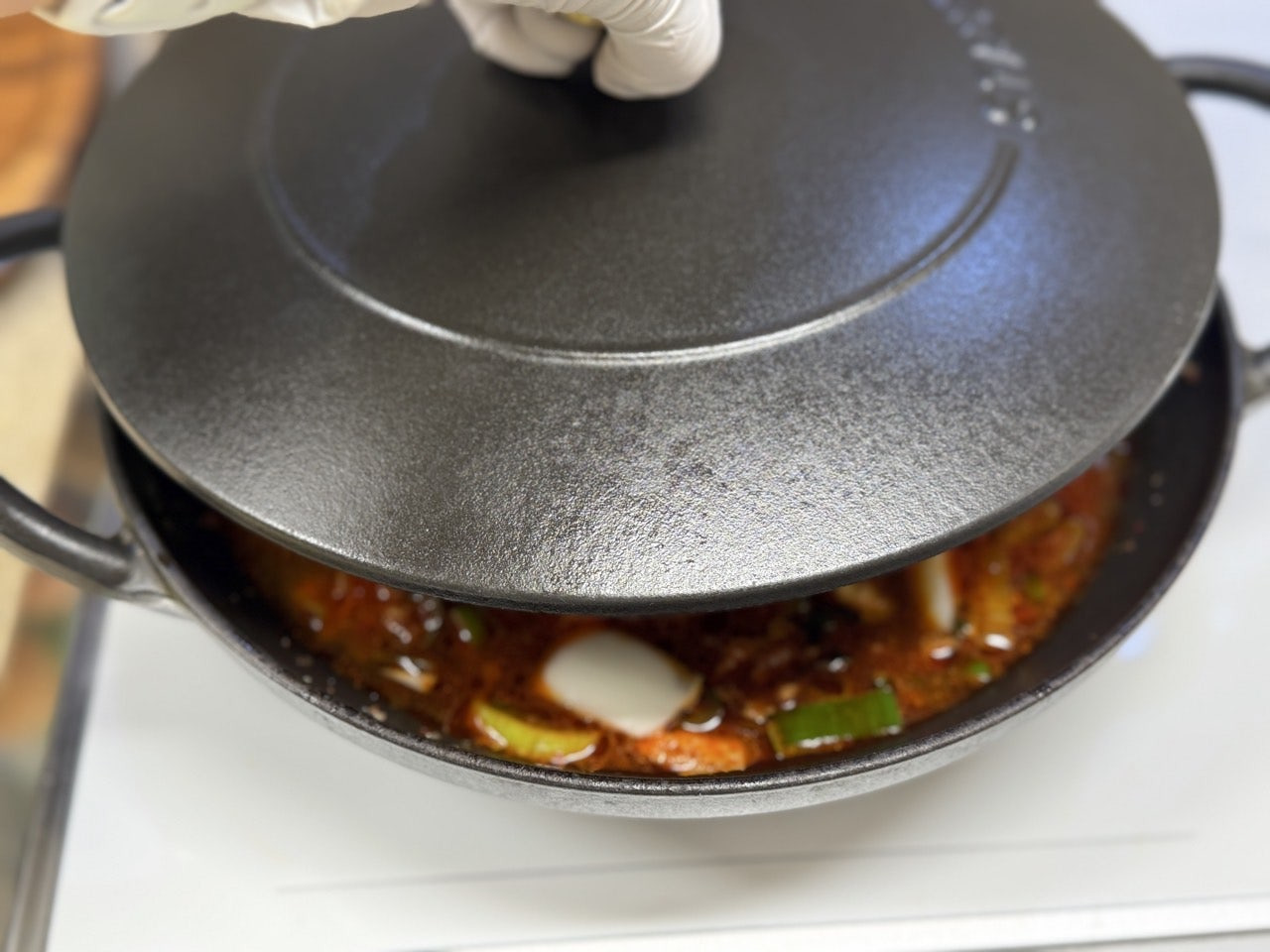 다시 뚜껑을 닫고 순두부와 스팸에