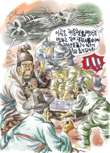 이곳은 귀문혈(鬼門穴)을 범하고 있어 광중(壙中)에 괴기가 있으니, 속히 옮기십시오. 그렇지 않으면 반드시 재앙이 닥칠 것입니다.