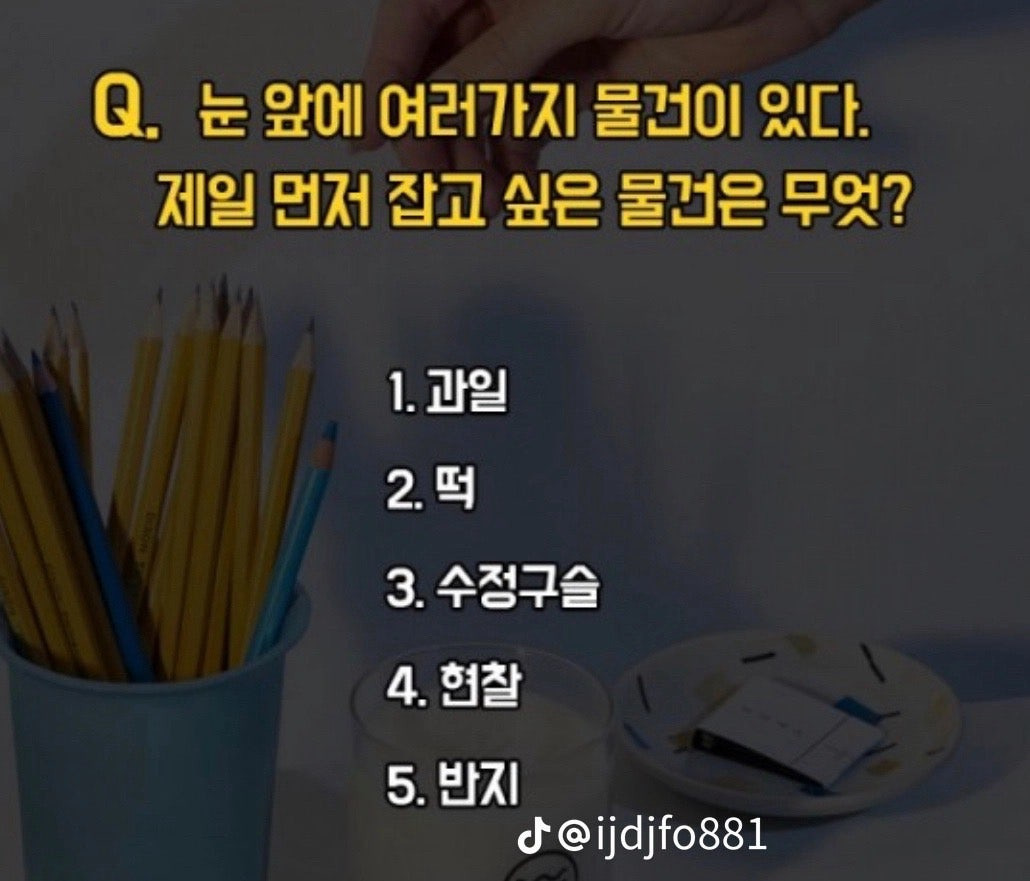 재미로 보는 연애 심리테스트 작성자미션|작성시간25.08.27|조회수51 목록 댓글 2 글자크기 작게가 글자크기 크게가 다음검색 현재 게시글 추가 기능 열기 북마크 공유하기 신고 센터로 신고 댓글 댓글 2 댓글쓰기 답글쓰기 댓글 리스트 작성자황돈 | 작성시간 25.08.28 과일, 소지, 붕어빵대가리 답댓글 작성자미션 작성자 본인 여부 작성자 | 작성시간 25.08.28 댓글 전체보기