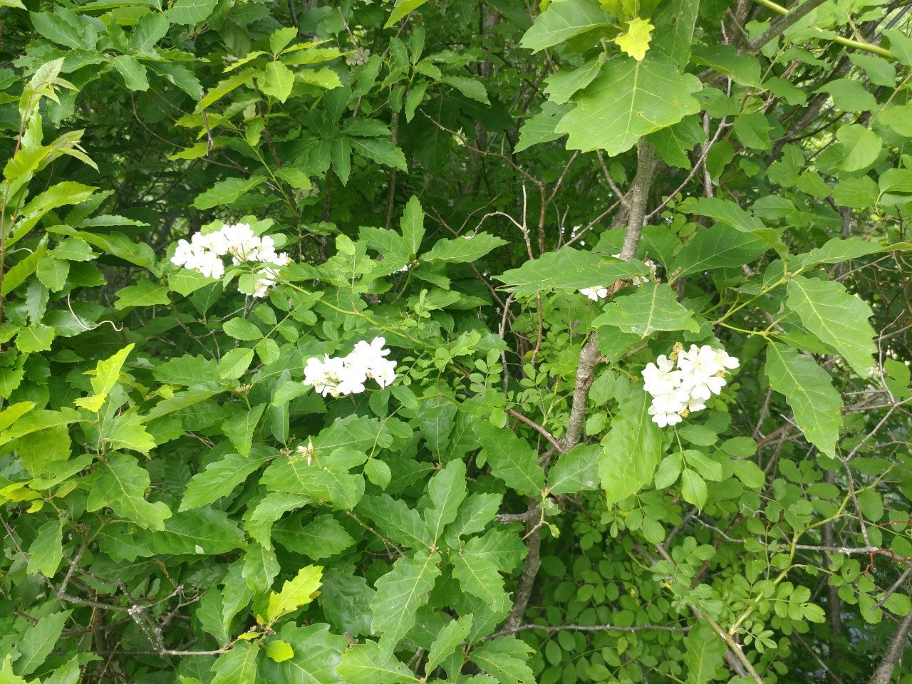 ● 꽃은 ㅡ 5~6월에 새로 나는 햇가지 끝에 흰색 또는 분홍빛 도는 흰색으로 핀다. 어긋나게 갈라지고 갈라져 원뿔처럼 된 꽃대가 나와 끝마다 지름 2㎝ 정도의 꽃이 달린다.
