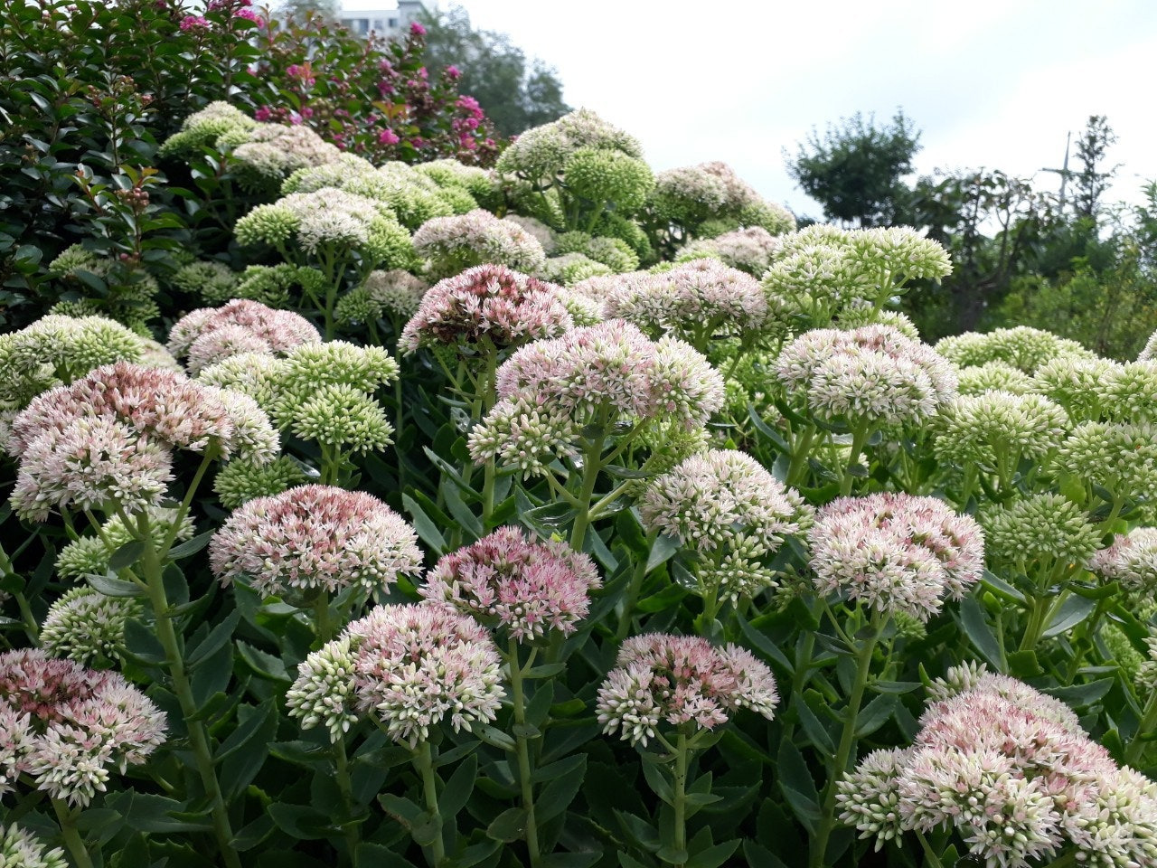 늦여름부터 피기 시작한 꽃들이 여전히 피어 있으니 꽃이 참 오래 간다. 다육질의 잎들 위에서 꽃대가 수북히 나와 모여 핀다.