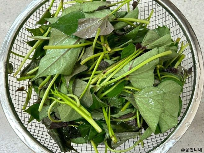 고구마 줄기의 풍부한 칼륨 성분이 체내 유해한 노폐물과 염증을 외부로 배출하는데 뛰어난 효능이 있습니다.