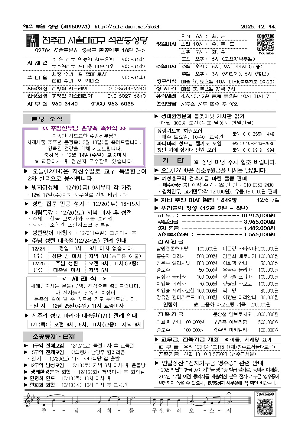 석관동성당 2025년 12월 14일 주보(수정) 작성자카페지기|작성시간25.12.10|조회수216 목록 댓글 0 글자크기 작게가 글자크기 크게가 다음검색 현재 게시글 추가 기능 열기 북마크 공유하기 신고 센터로 신고 댓글 댓글 0 댓글쓰기 답글쓰기 댓글 리스트