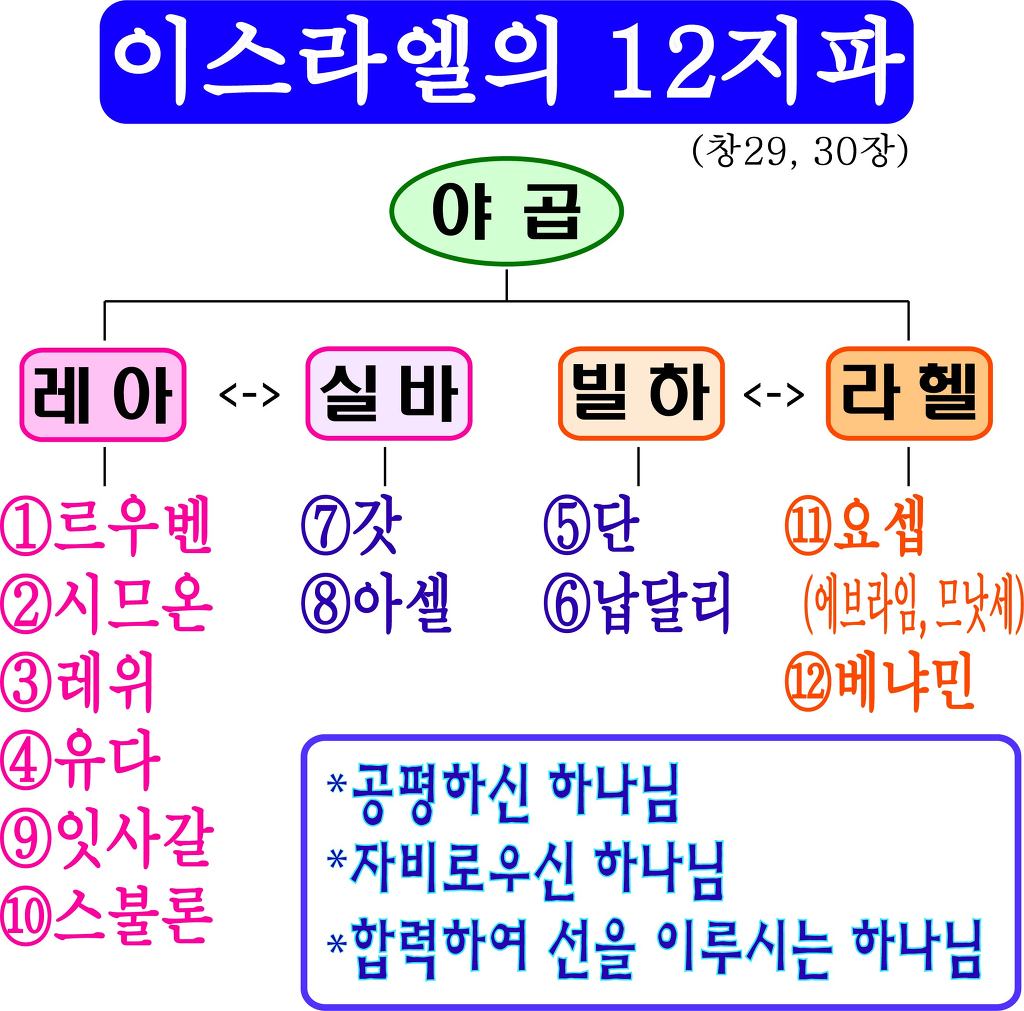 레위와요셉이 빠지고 므낫세와 에브라임이 하나의 독립 지파가 되엇다 |