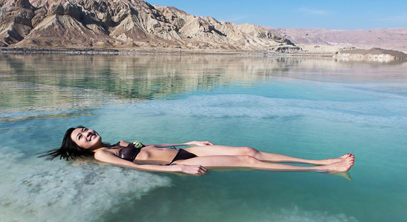 사해에는 물고기가 살지 않아 사해(死海)라고 불린다. 칼슘과 마그네슘 함유량이 높아 생물이 살기 어려운 환경이기 때문이다. 사해의 물 속에 든 염분 함량은 무려 31.5%. 이게 어느정도냐 하면, 체액의 농도와 똑같은 생리식염수가 0.9%, 바닷물의 평균 염분 함유량이 3.5%이고, 31.5%면 일반적인 바다에서 쉽게 뜨지 못하는 사람이라도 부력으로 둥둥 떠다닐 정도여서, 맥주병이거나 수영을 못하는 사람도 들어갈수 있는 장점이 있다.