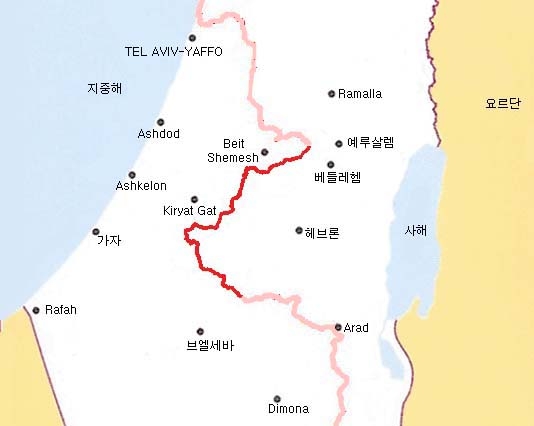 아래 지도 중간쯤...화살표를 한 곳을 지나가고 있습니다...사해가 있는 왼쪽 부분...