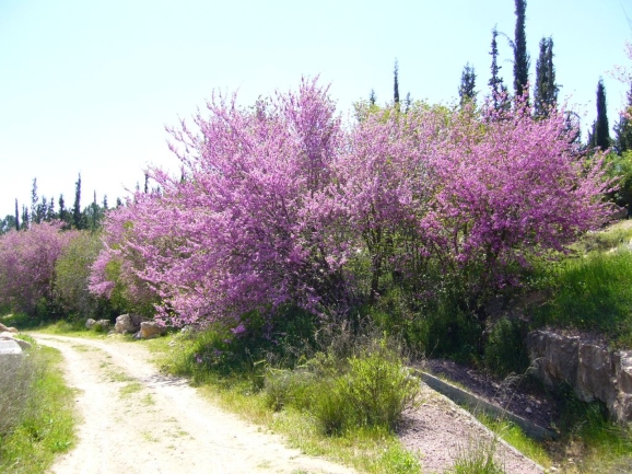 서양 박태기나무로 이스카리옷 유다(마태 27,5; 사도 1,18)가 목매어 죽었다고 하여 '유다나무'라고...원래는 흰 꽃을 피웠는데 예수님을 배반한 유다가 목을 매어 죽은것이 부끄러워 붉은 꽃으로 변하였다는 전설이 있는 나무...