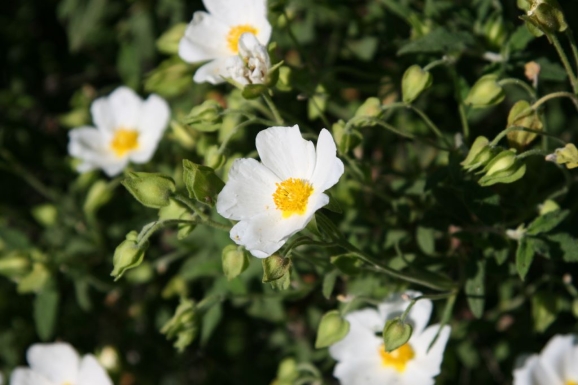반일화는 아침에 피기 시작하여 정오가 지나면 곧 시들기 때문에 붙여진 이름이며, 우리나라의 산철쭉나무와 비슷하게 생겼으며 꽃은 찔레꽃을 닮았다. 관목으로 군락을 이루어 자라며 키는 40-80cm, 반일화는 두 종류가 있는데 하나는 흰색이고 다른 하나는 분홍색이다. 운이 좋게도 아래 사진에서 두 종류의 꽃을 볼 수 있다.