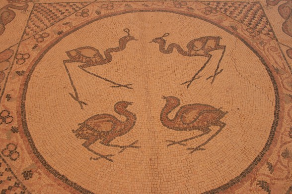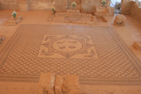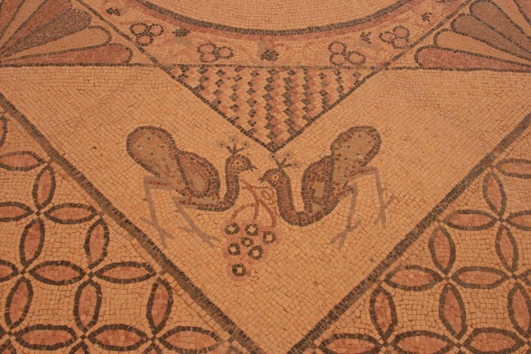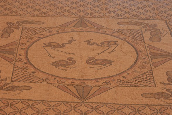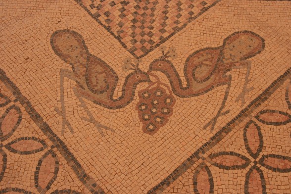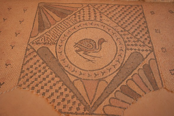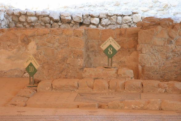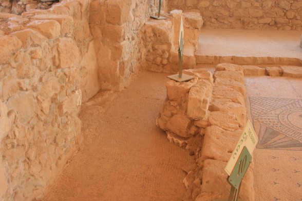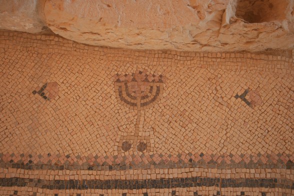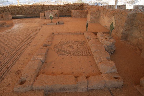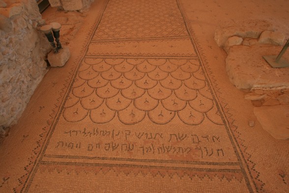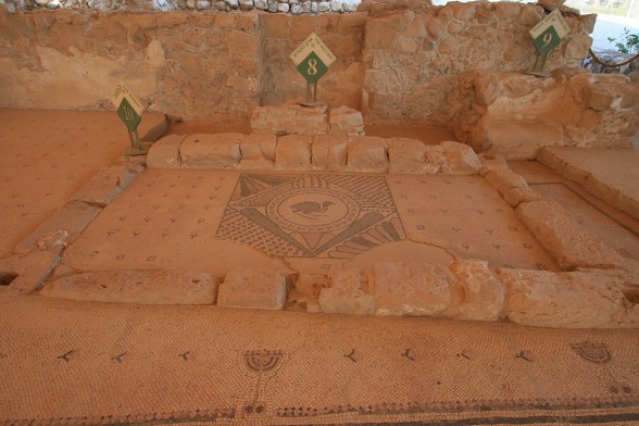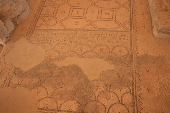특별히 관심을 끄는 것으로는 바닥에 히브리어와 아람어로 새겨진 모자이크이다.