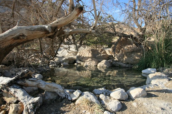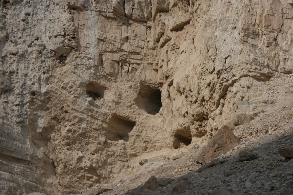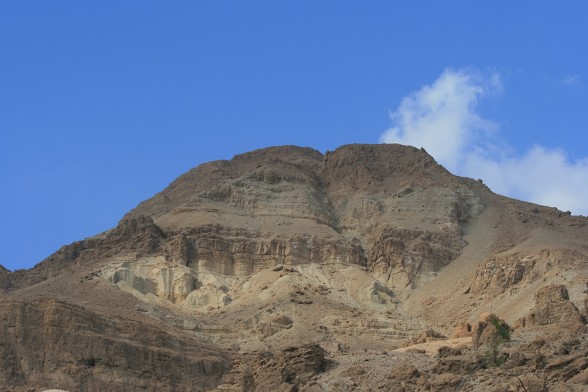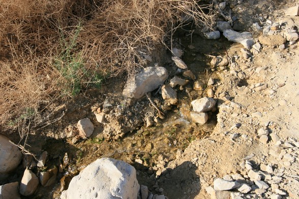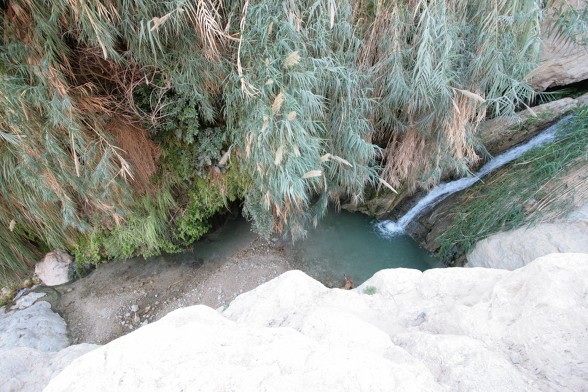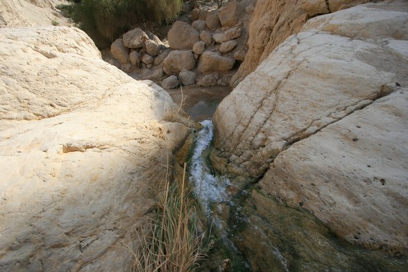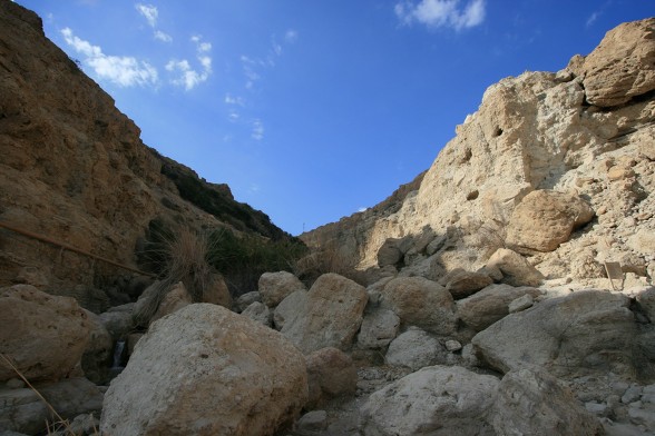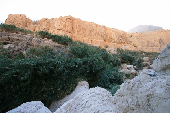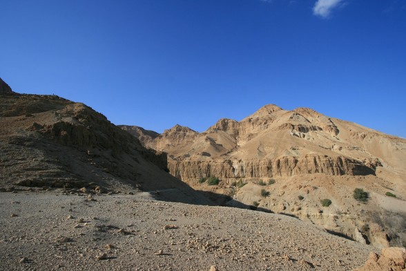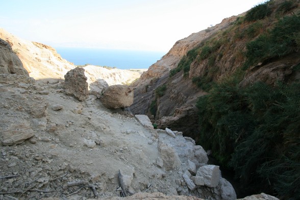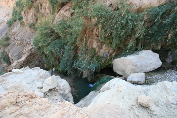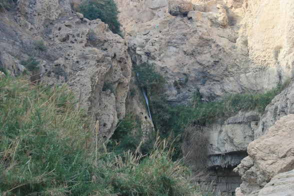 능선 중턱에 있는 엔 게디 샘. 엔 게디 샘 옆에는 청동기 시대 성소가 있다.