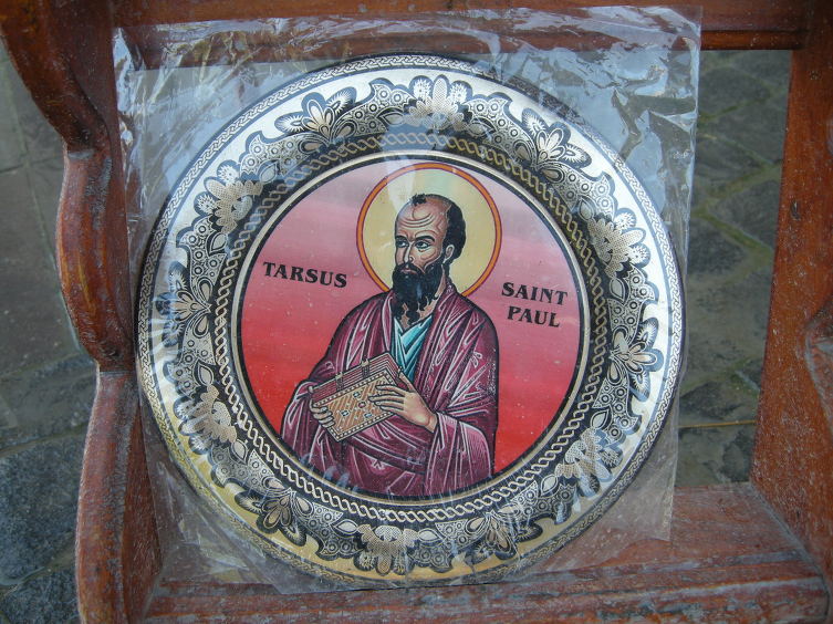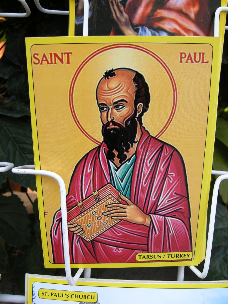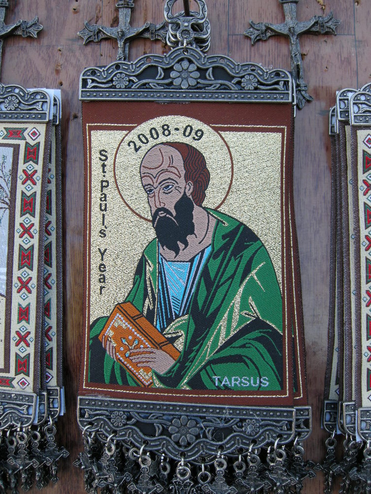 인근 판매대에서 팔고있는 사도 바울 사진들