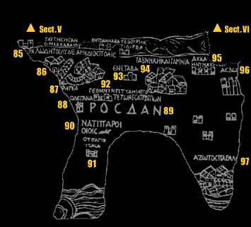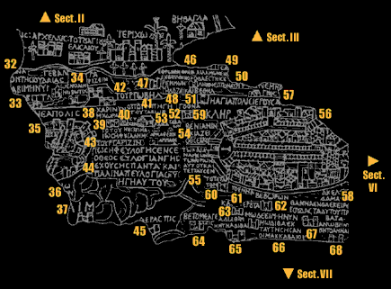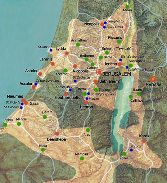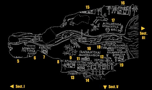 마다바 모자이크 지도의 상세 지도와 명칭은 작은형제회(프란치스코회) 예루살렘 성서 대학에서 구축한 다음 자료를 참고로 하였다.