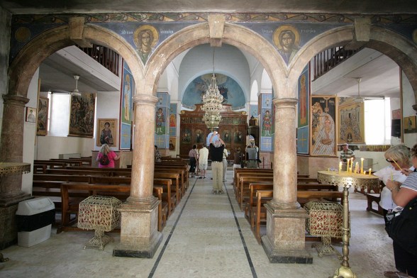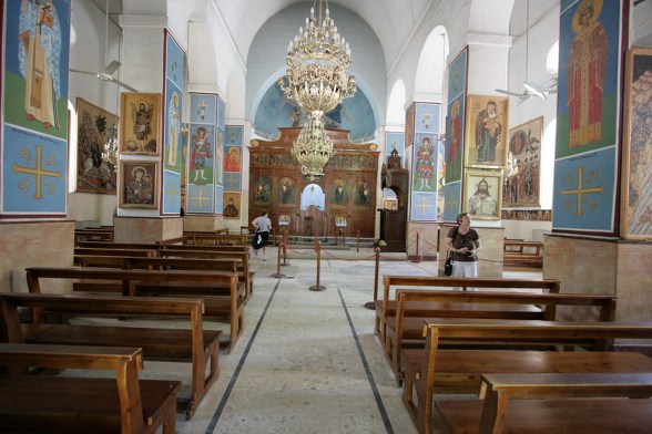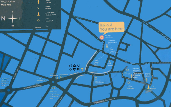 성당 오른쪽에 있는 건물이 마다바 지도를 설명하는 장소