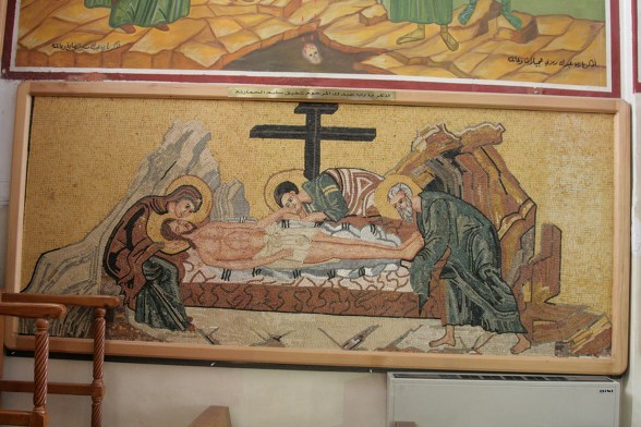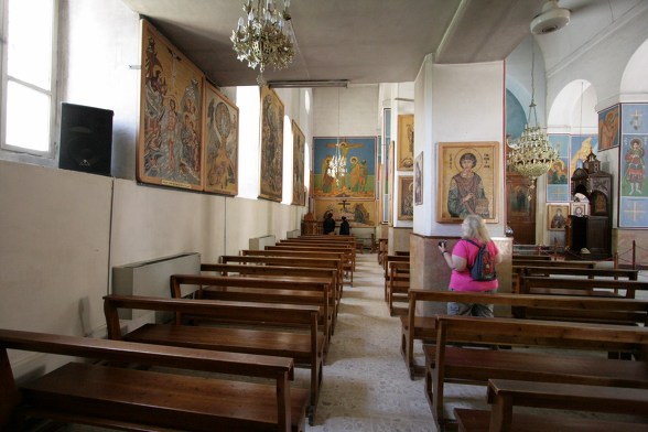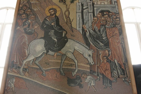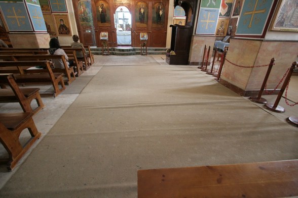 성당 안쪽 바닥에 카페트가 깔려 있는것이 보인다. 미사가 있을 경우는 모자이크를 보호하기 위해 카페트로 덮는다.