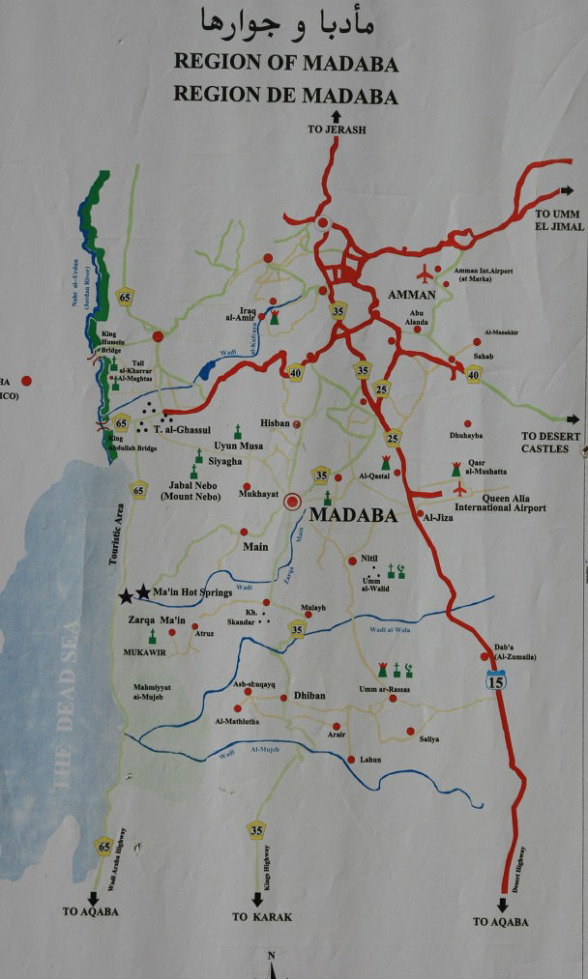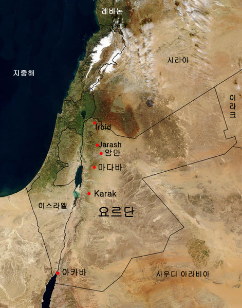 왼쪽은 사해, 오른쪽 부분이 마다바 평원과 마다바
