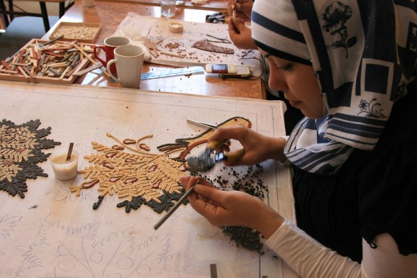 모자이크가 있는 부분을 카페트로 덮은 모습