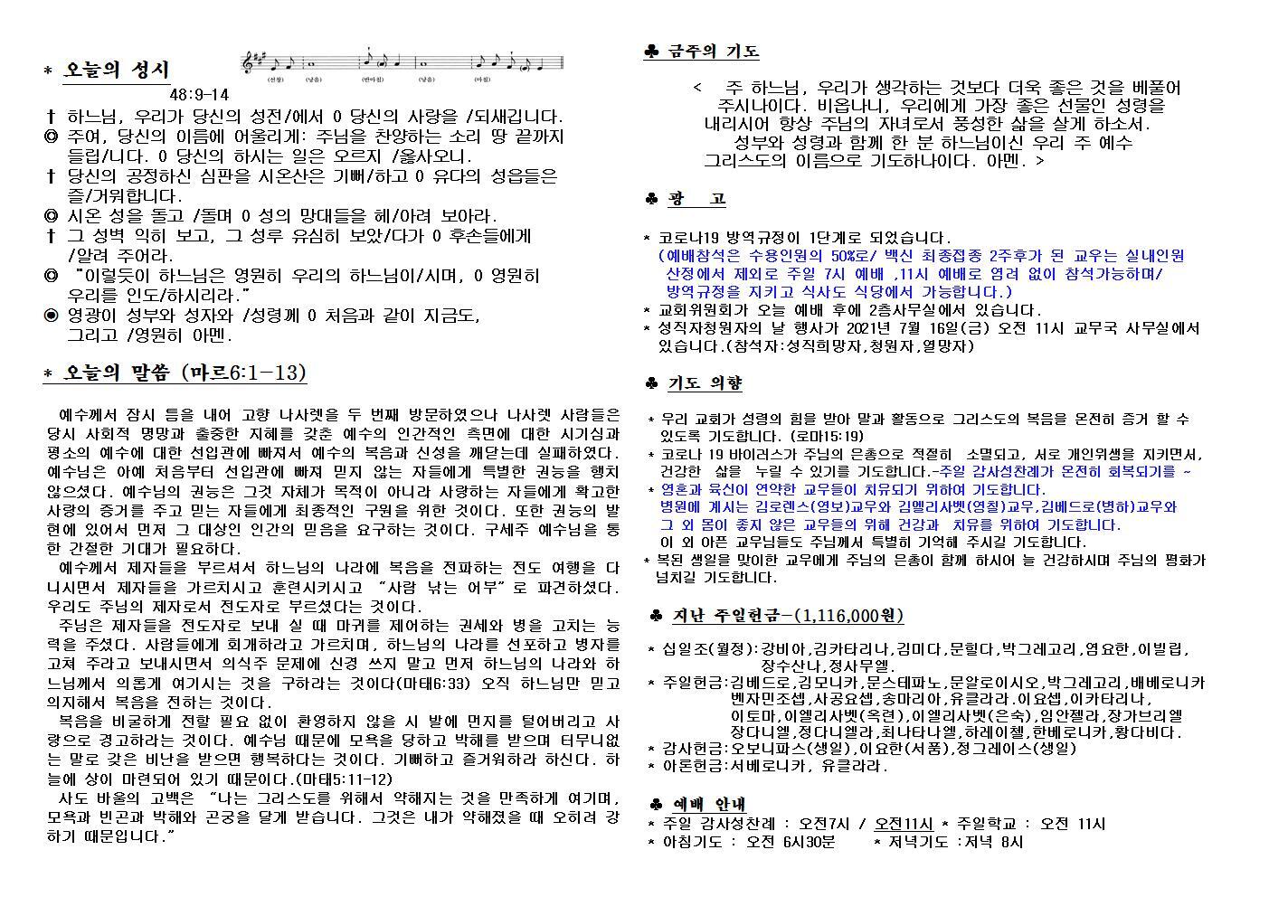 대구교회주보 2021년 7월 4일 연중 14주일 작성자삼위일체|작성시간21.07.03|조회수76 목록 댓글 0 글자크기 작게가 글자크기 크게가 다음검색 현재 게시글 추가 기능 열기 북마크 공유하기 신고 센터로 신고 댓글 댓글 0 댓글쓰기 답글쓰기 댓글 리스트