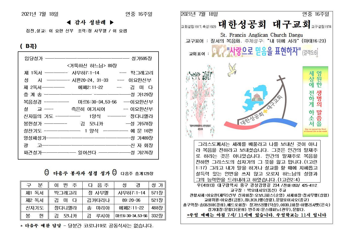 대구교회주보 2021년 7월 18일 연중 16주일 작성자삼위일체|작성시간21.07.17|조회수81 목록 댓글 0 글자크기 작게가 글자크기 크게가 다음검색 현재 게시글 추가 기능 열기 북마크 공유하기 신고 센터로 신고 댓글 댓글 0 댓글쓰기 답글쓰기 댓글 리스트
