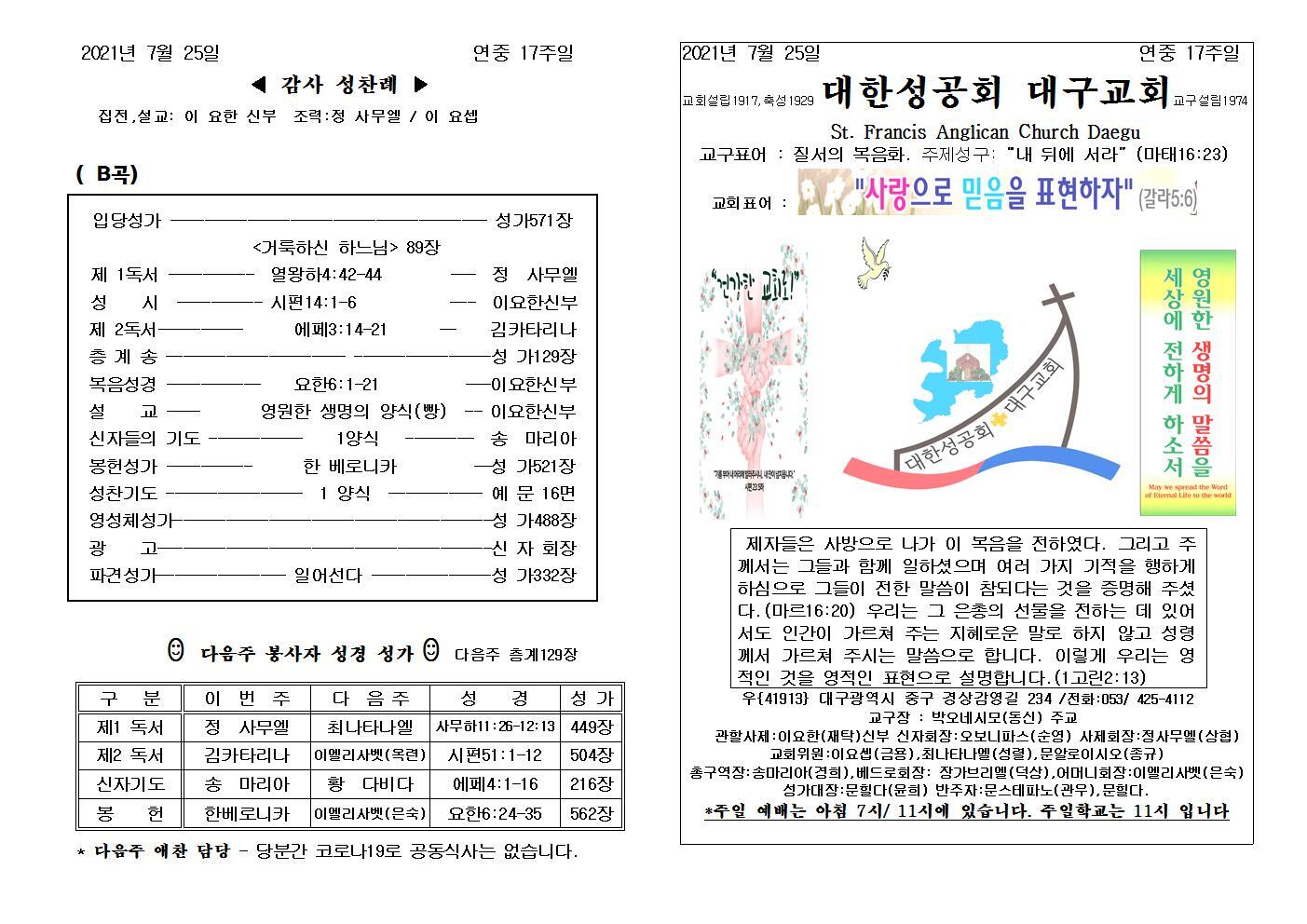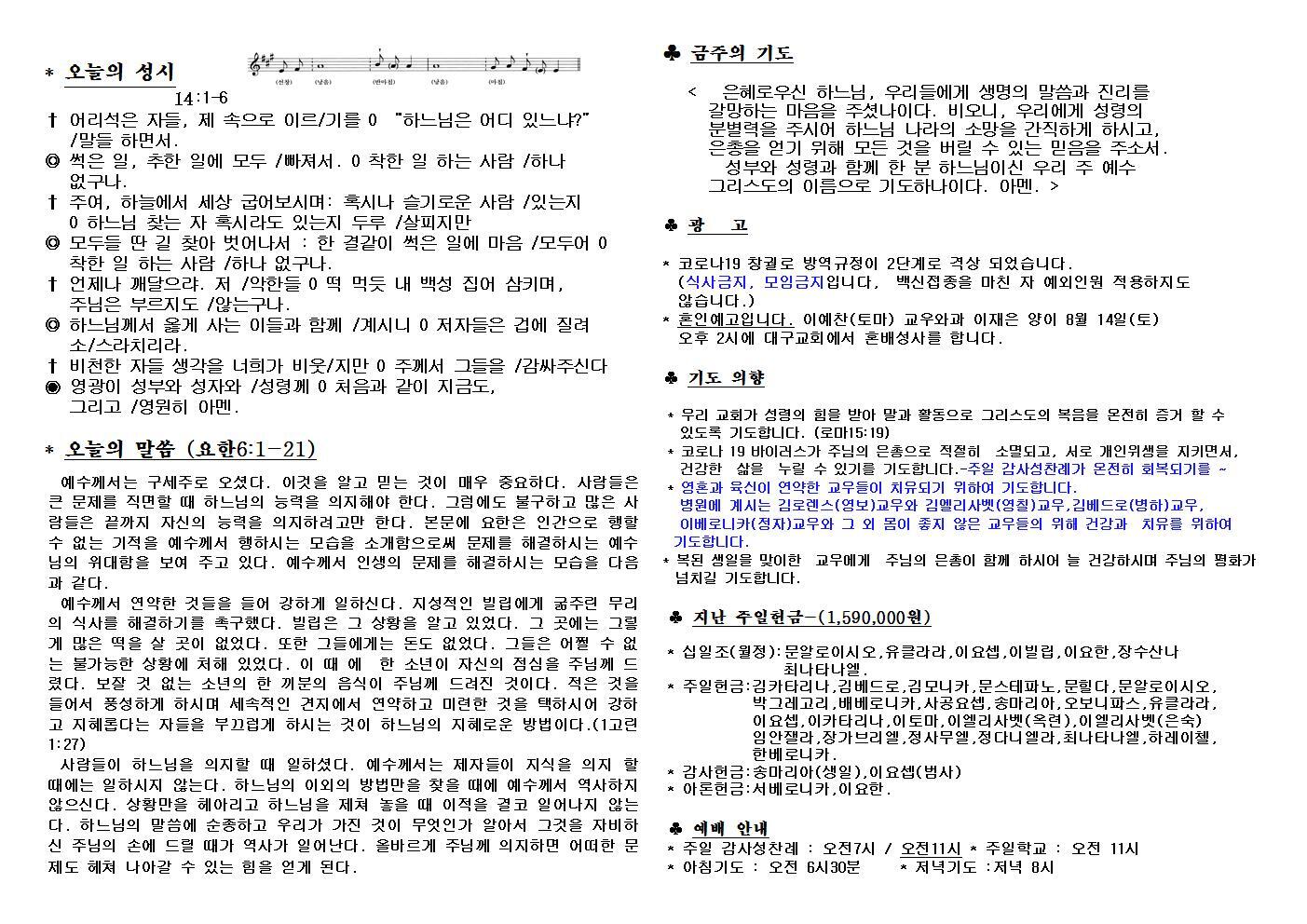 대구교회주보 2021년 7월 25일 연중 17주일 작성자삼위일체|작성시간21.07.24|조회수81 목록 댓글 0 글자크기 작게가 글자크기 크게가 다음검색 현재 게시글 추가 기능 열기 북마크 공유하기 신고 센터로 신고 댓글 댓글 0 댓글쓰기 답글쓰기 댓글 리스트