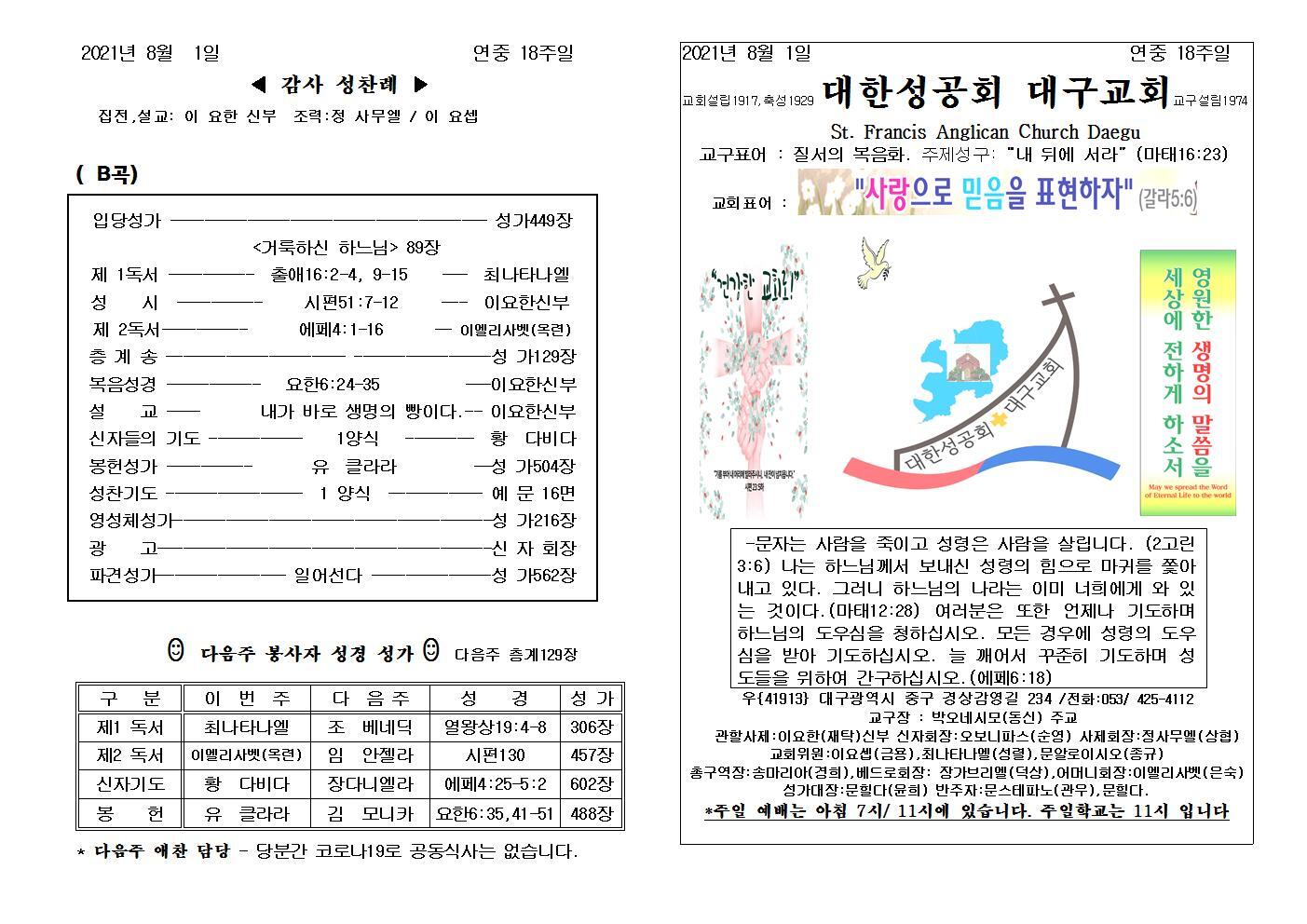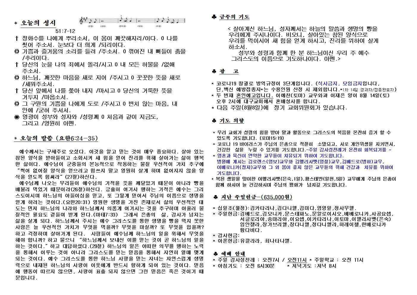 대구교회주보 2021년 8월 1일 연중 18주일 작성자삼위일체|작성시간21.07.31|조회수82 목록 댓글 0 글자크기 작게가 글자크기 크게가 다음검색 현재 게시글 추가 기능 열기 북마크 공유하기 신고 센터로 신고 댓글 댓글 0 댓글쓰기 답글쓰기 댓글 리스트
