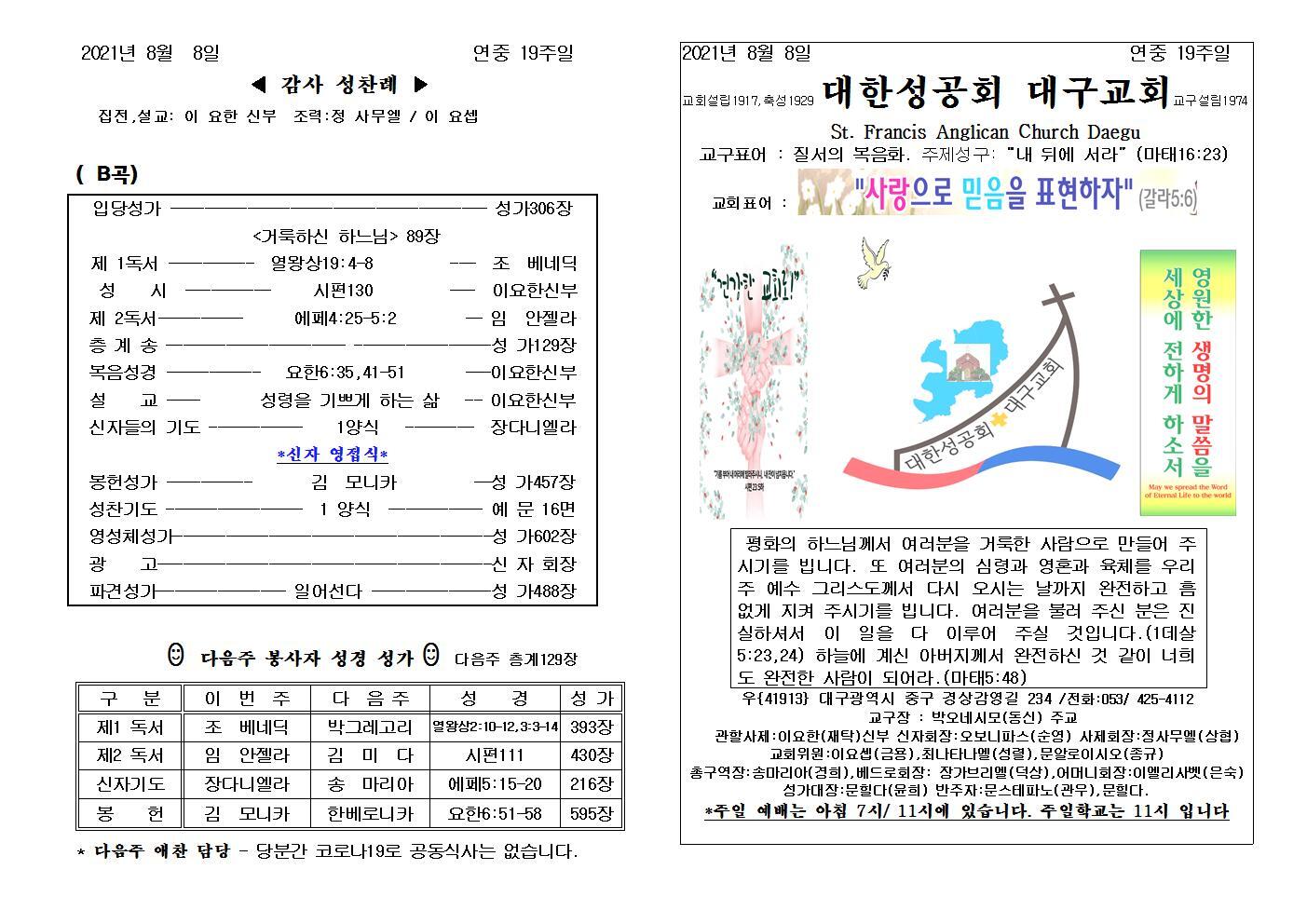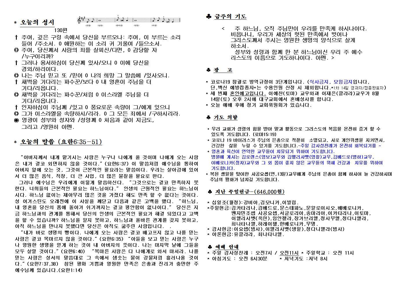 대구교회주보 2021년 8월 8일 연중 19주일 작성자삼위일체|작성시간21.08.06|조회수92 목록 댓글 0 글자크기 작게가 글자크기 크게가 다음검색 현재 게시글 추가 기능 열기 북마크 공유하기 신고 센터로 신고 댓글 댓글 0 댓글쓰기 답글쓰기 댓글 리스트