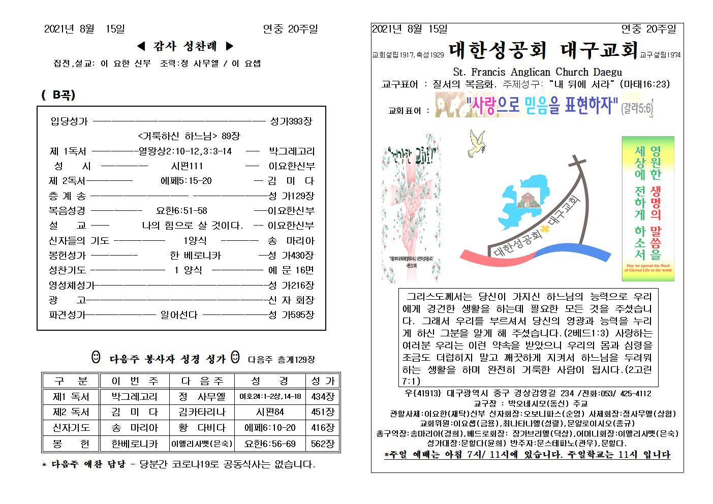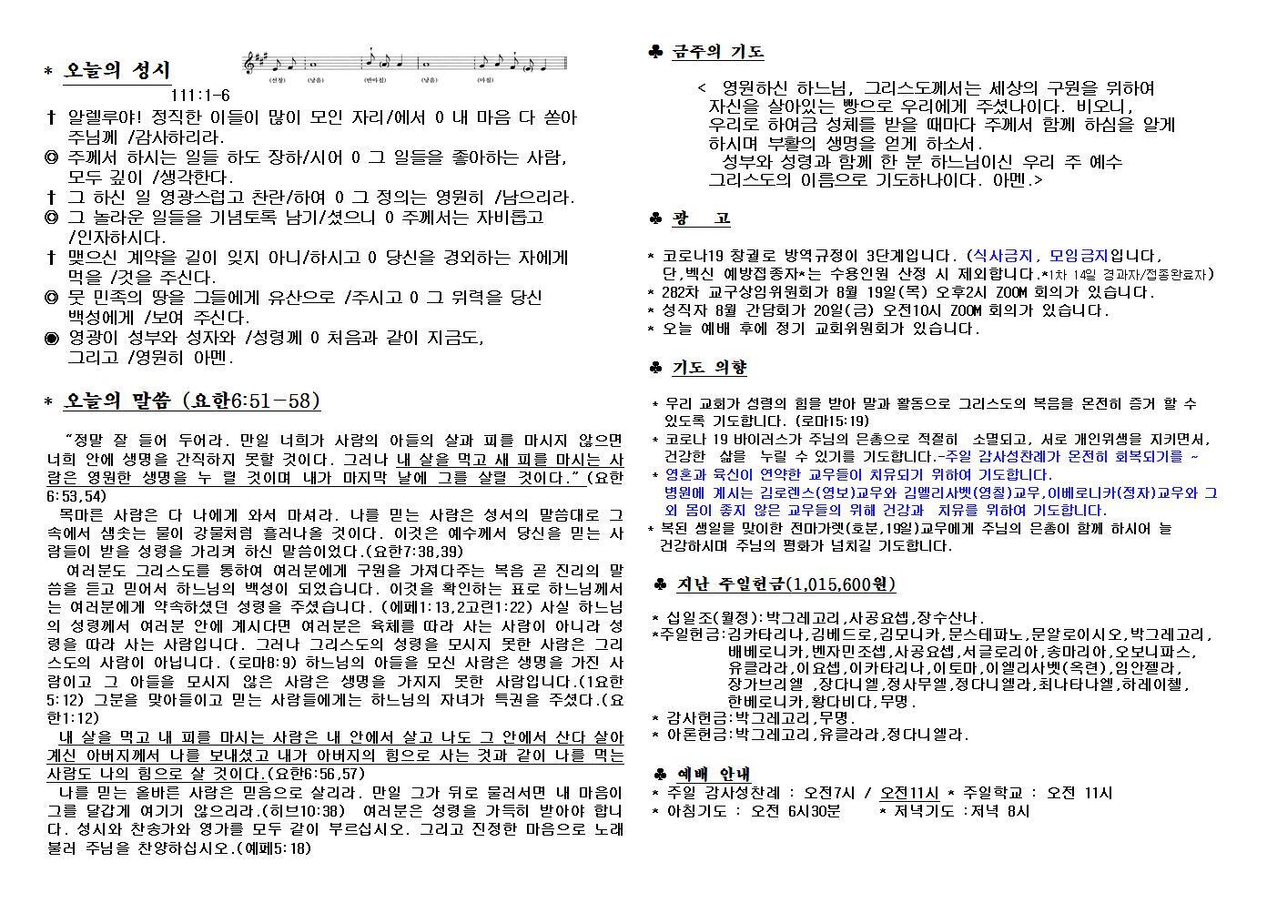 대구교회주보 2021년 8월 15일 연중 20주일 작성자삼위일체|작성시간21.08.20|조회수84 목록 댓글 0 글자크기 작게가 글자크기 크게가 다음검색 현재 게시글 추가 기능 열기 북마크 공유하기 신고 센터로 신고 댓글 댓글 0 댓글쓰기 답글쓰기 댓글 리스트