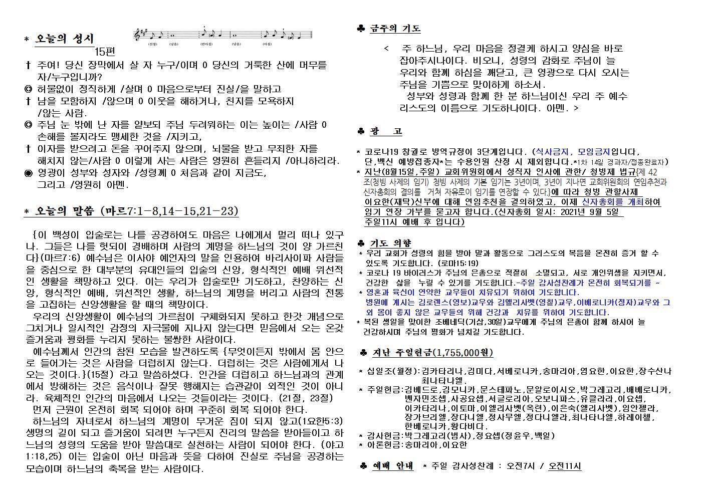 대구교회주보 2021년 8월 29일 연중 22주일 작성자삼위일체|작성시간21.08.28|조회수63 목록 댓글 0 글자크기 작게가 글자크기 크게가 다음검색 현재 게시글 추가 기능 열기 북마크 공유하기 신고 센터로 신고 댓글 댓글 0 댓글쓰기 답글쓰기 댓글 리스트