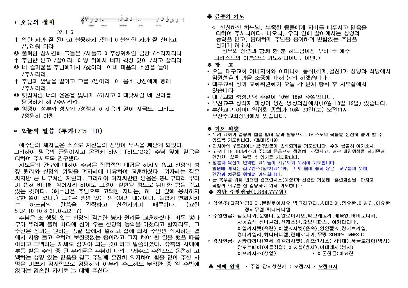 대구교회주보 2022년 10월 2일 연중 27주일 작성자삼위일체|작성시간22.10.01|조회수115 목록 댓글 0 글자크기 작게가 글자크기 크게가 다음검색 현재 게시글 추가 기능 열기 북마크 공유하기 신고 센터로 신고 댓글 댓글 0 댓글쓰기 답글쓰기 댓글 리스트