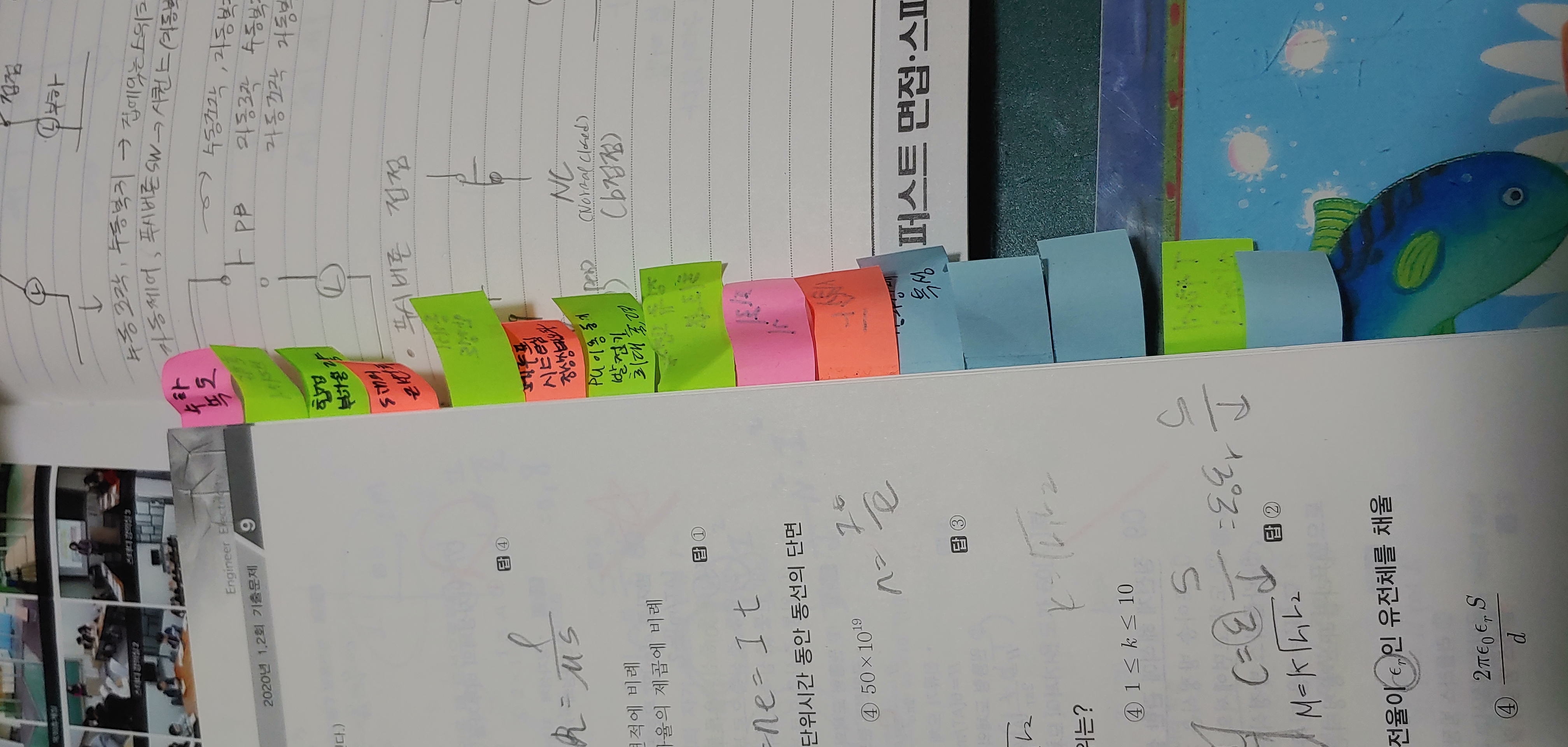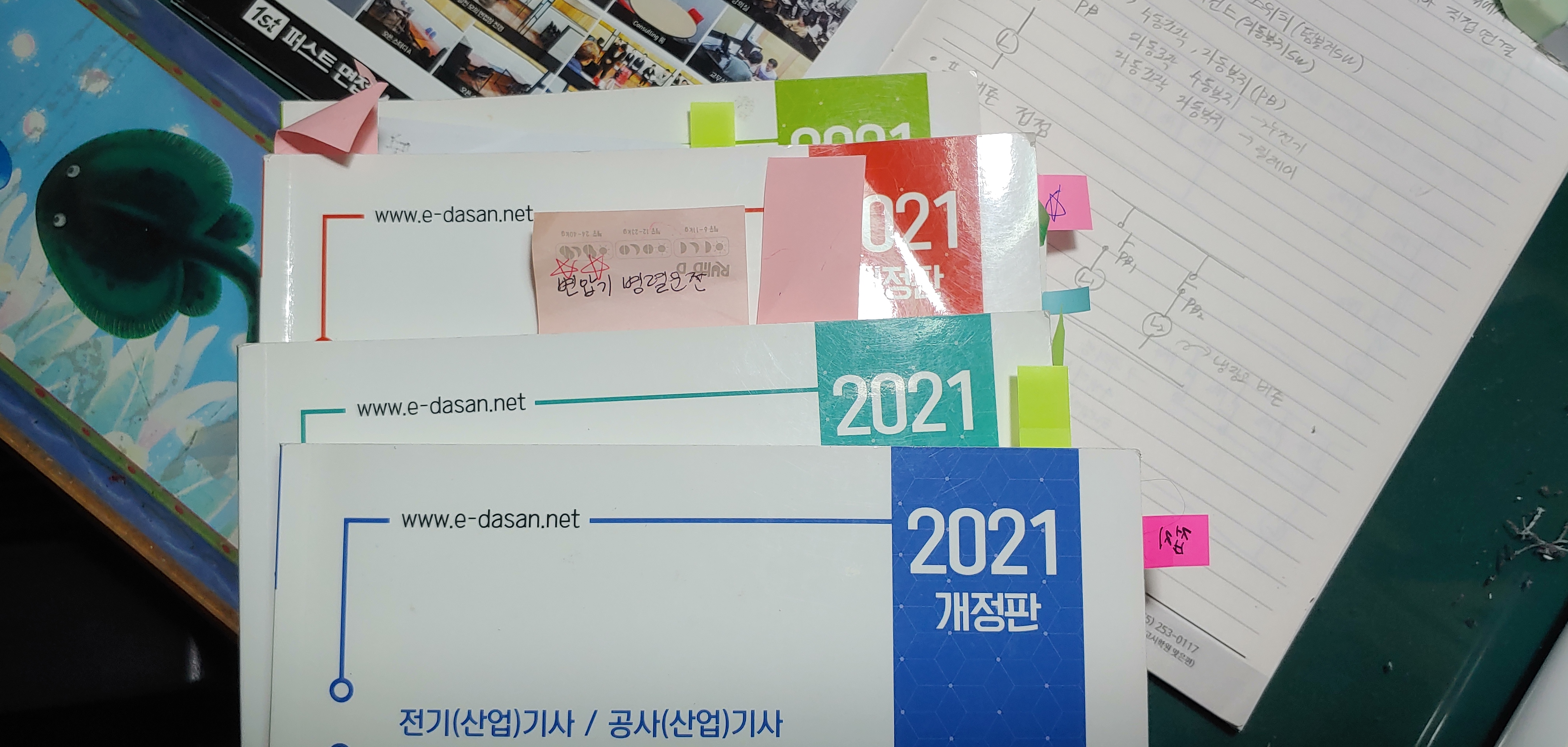 둘째, 제가 했던 공부기간과 과정에 대한 설명을 드리겠습니다. 제목에서 말했다 싶이 자격증을 따기까지 약 두달이라는 시간이 걸렸습니다. 한달간 모든 이론강의를 전부 듣고 (1회독) , 남은 한달은 기출문제를 풀면서 중간중간 이론책을 가볍게 5회독 이상 한 것 같습니다. 공부 시간은 10시간+@ 정도 였고 쉬는날 없이 토,일 모두 공부했습니다. 약속도 잡지않고 게임, sns도 전부 삭제했고 두달간 바깥세상과는 단절해서 살다 싶이 지냈습니다. 이론 공부는 인강을 듣고 뒷페이지에 수록된 문제를 풀고 그 다음 풀이를 보는 방식으로 진행했습니다.(스스로 풀어보는게 매우중요!) 교재에 내용도 잘 정리되어있고, 시험에 나오는 내용들 위주로 엄선해서 그런지 많이 두껍거나 하지않아서 금방 금방 읽히실겁니다. 잘 이해가 가지않는 부분은 전기기사 한번에 합격하기 카페와 유튜브 댓글을 활용하시면 좋을 듯 합니다. 과년도는 15년치 정도를 돌렸고 이해가 가지않는 문제나, 암기가 잘 안됬던 문재들은 포스트잇을 붙여두고 여러번 다시 보았습니다.