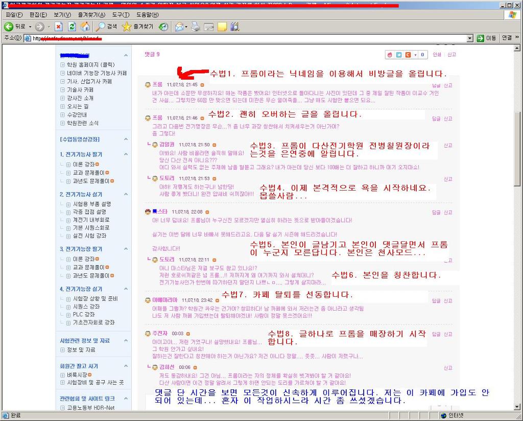 특정 학원의 강사를 매우 칭찬하고, 한편으로는 비방하는 글을 남긴 일이 발생했기 때문입니다.