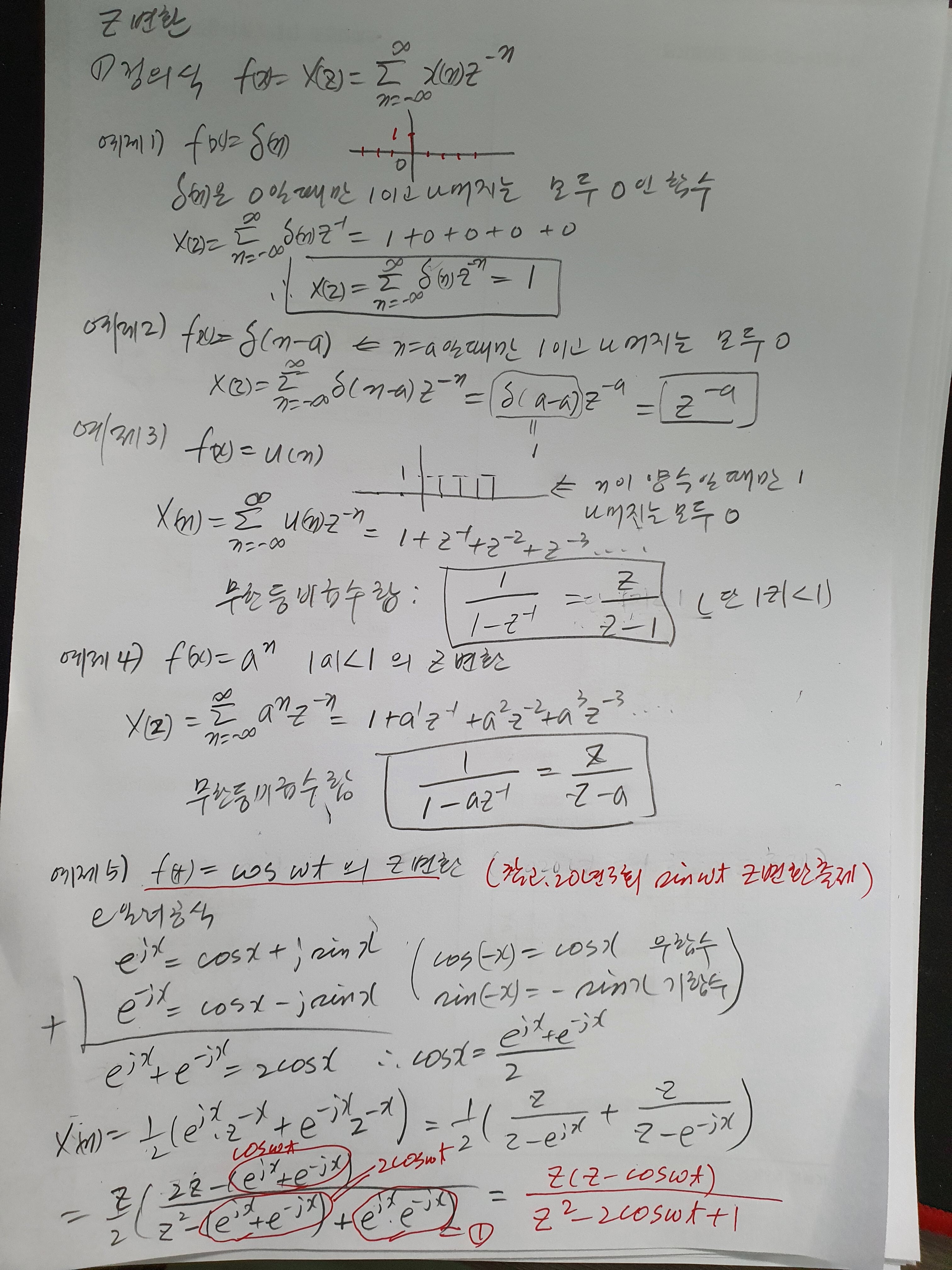 z 변환(참고하세요) 작성자잃어버린세대|작성시간21.01.29|조회수1,705 목록 댓글 0 글자크기 작게가 글자크기 크게가 Z변환 증명입니다. 변환표로 외우시다 보면 헤깔리실듯합니다.작년도 3회에는 sin의 z변환도 출제되었습니다.delta & impulse함수도 같이 올려드립니다.참고하시라고 cos의 z변환식 올려드립니다. 다음검색 현재 게시글 추가 기능 열기 북마크 공유하기 신고 센터로 신고 댓글 댓글 0 댓글쓰기 답글쓰기 댓글 리스트