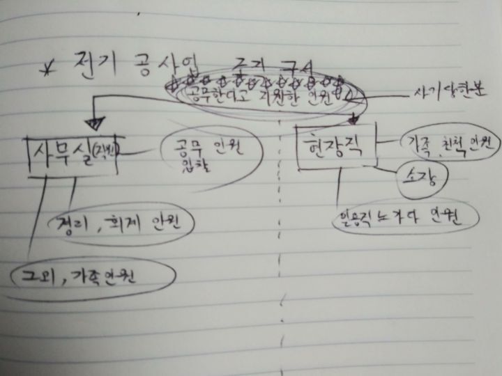 신입으로 공무지원을 하게될 시에 문제점을 알려드리기전에 전기공사업 조직도를 일단
