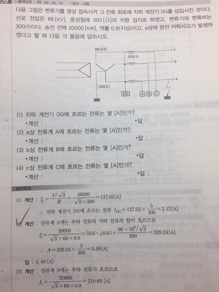 이문제말고 지락전류는 충전전류의 3배이다라는것은 접지되어있지않은 전선의 접지사고시 전선과대지사이에 대지정전용량에 의한 3을 곱해주는 식과 혼란있어보입니다. 필기 전력공학 5장을 다시 한번 보시는것을 권해드립니다. -