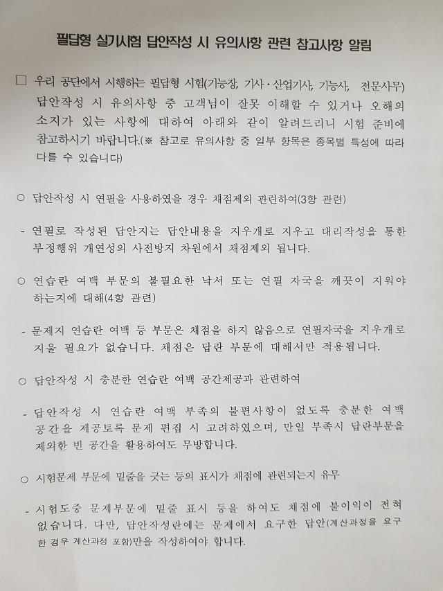 답댓글 작성자전국일주 작성시간 20.07.21 실기시험지 첫장에 보시면