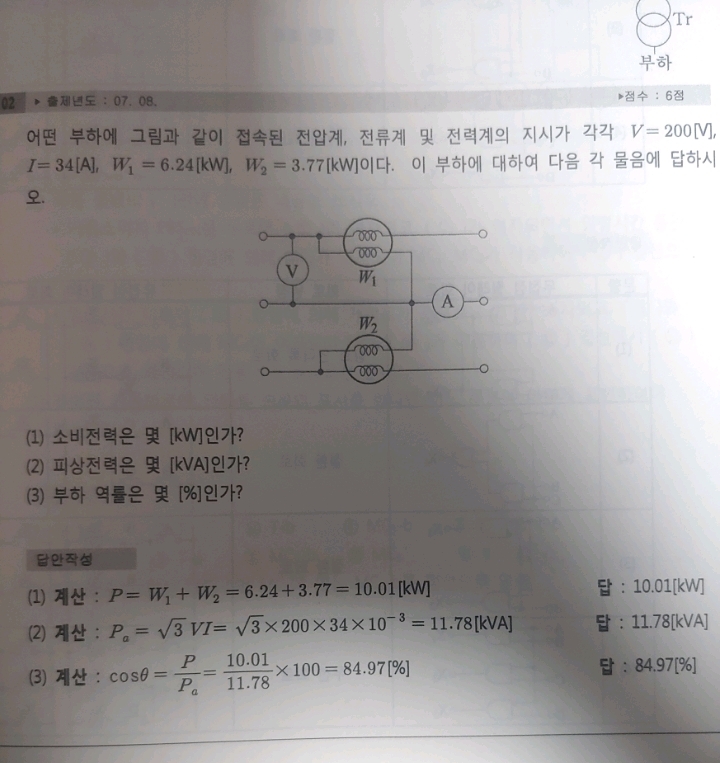 이런 문제에서는 보통 아무런 언급이 없으면 3상이라고 보고 계산하는 건가요?