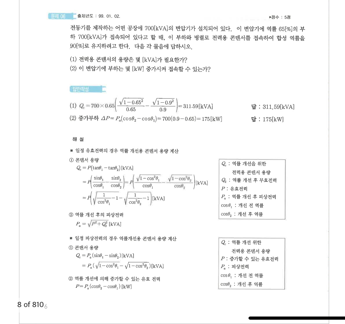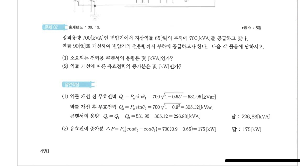 결국 아래 문제는 굳이 부하를 증가 시킬 거면서 쓸모없이 84.76[kVar]의 콘데서가 더 투입된 상황이라고 봅니다.