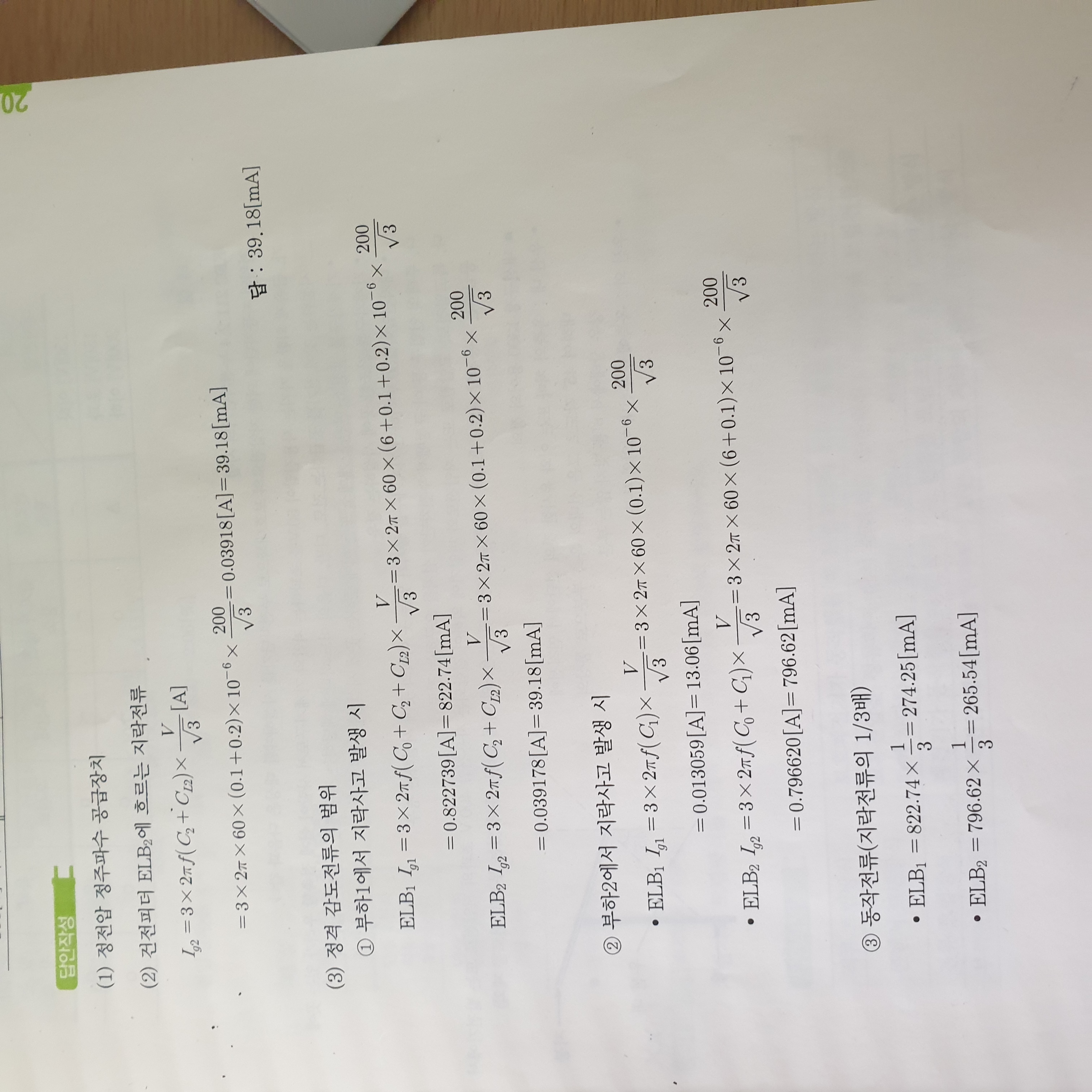 그런데 부하2지락시 흐르는 Ig2의 경우 위의 조건에 상관없이 동일한 공식을 통해 구해야 된다고 생각되는데,