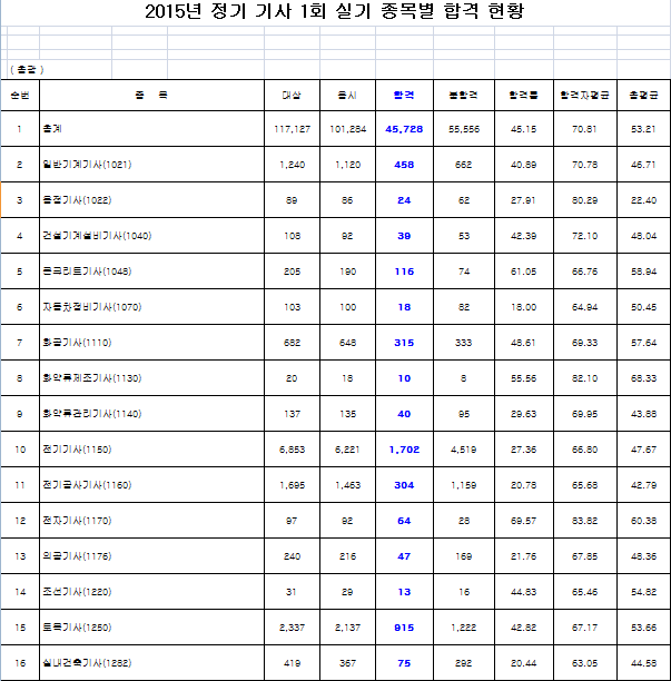 작성자쌍기사 취득할래 작성시간 15.06.05 년도합격률이라 이번회차합격자가많으로다음회차부터난이도를조정해서 한회차의합격자를조정할것입니다.
