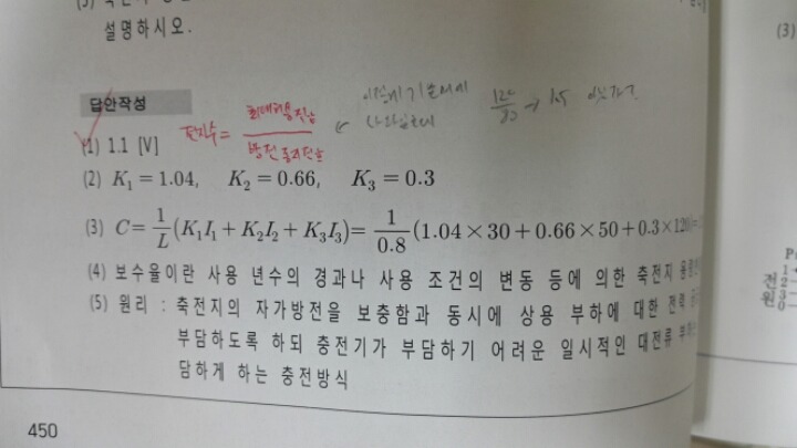 안녕하세요 공부중에 질문이있어 글올립니다. 다산에듀 실기정규반 교재에는 사진과같이 전지수는 최대허용전압 나누기 방전종지전압이라고 나와있는데요. 과년도 문제에서 방전종지전압을구할때 최대허용전압이 아닌 허용최저 전압을 이용하는데 교재가 잘못된건가요? 사진 첨부합니다!