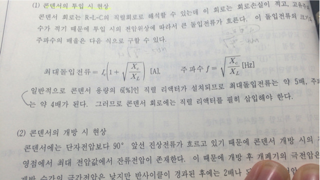 그러므로 콘덴서 회로에는 직렬 리액터를 필히 삽입해야 한다