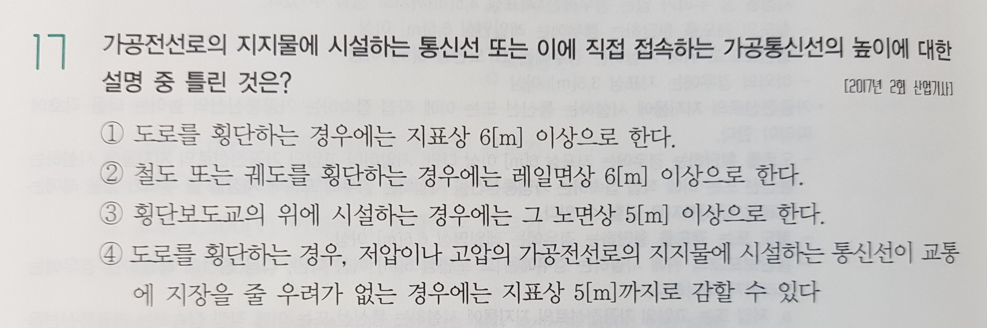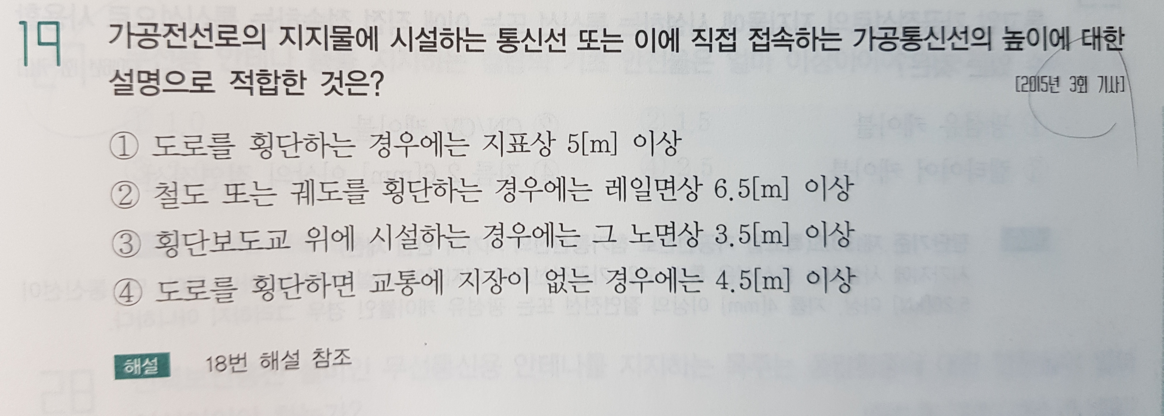 가공전선로의 지지물에 통신선을 시설하는 경우는 횡단보도 위로 3.5m 맞지않나요?