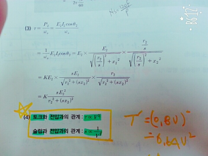그냥 토크는 E2의 제곱에 비례 이렇게하면 헷갈리지도 않을텐데 V라하면 공급전압이라는 느낌이 커서ㅠㅠ